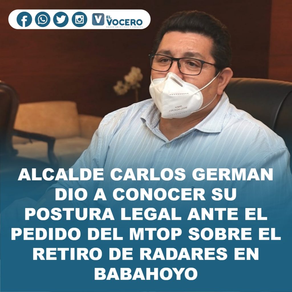 ALCALDE CARLOS GERMAN DIO A CONOCER SU POSTURA LEGAL ANTE EL PEDIDO DEL MTOP SOBRE EL RETIRO DE RADARES EN BABAHOYO