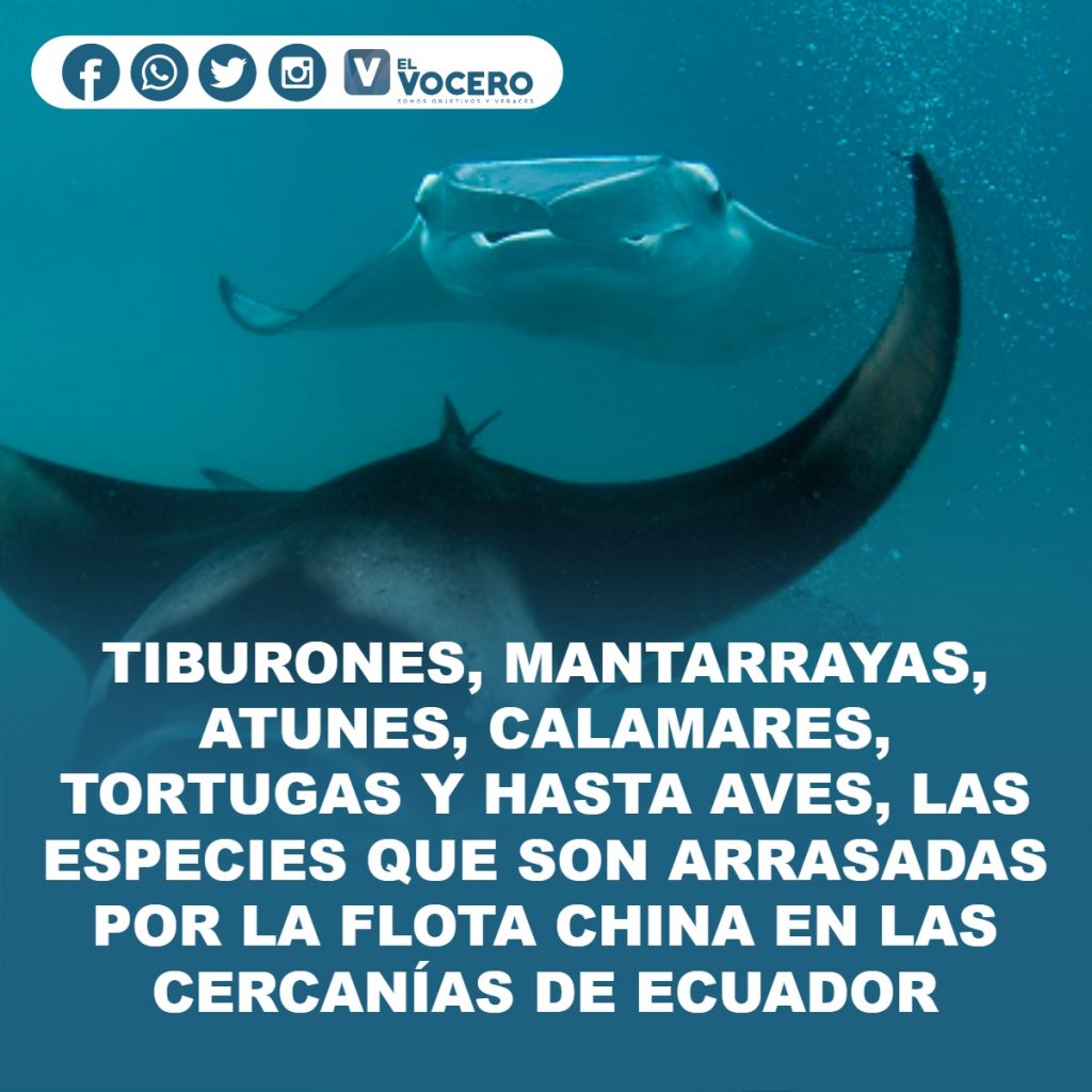 Son grupos gigantescos de barcos de todo tipo que arrasan con casi todas las especies marinas que se les cruzan. Tiburones, mantarrayas, atunes, calamares, tortugas y hasta aves son parte del cargamento que llevan las bodegas de la llamada flota china.