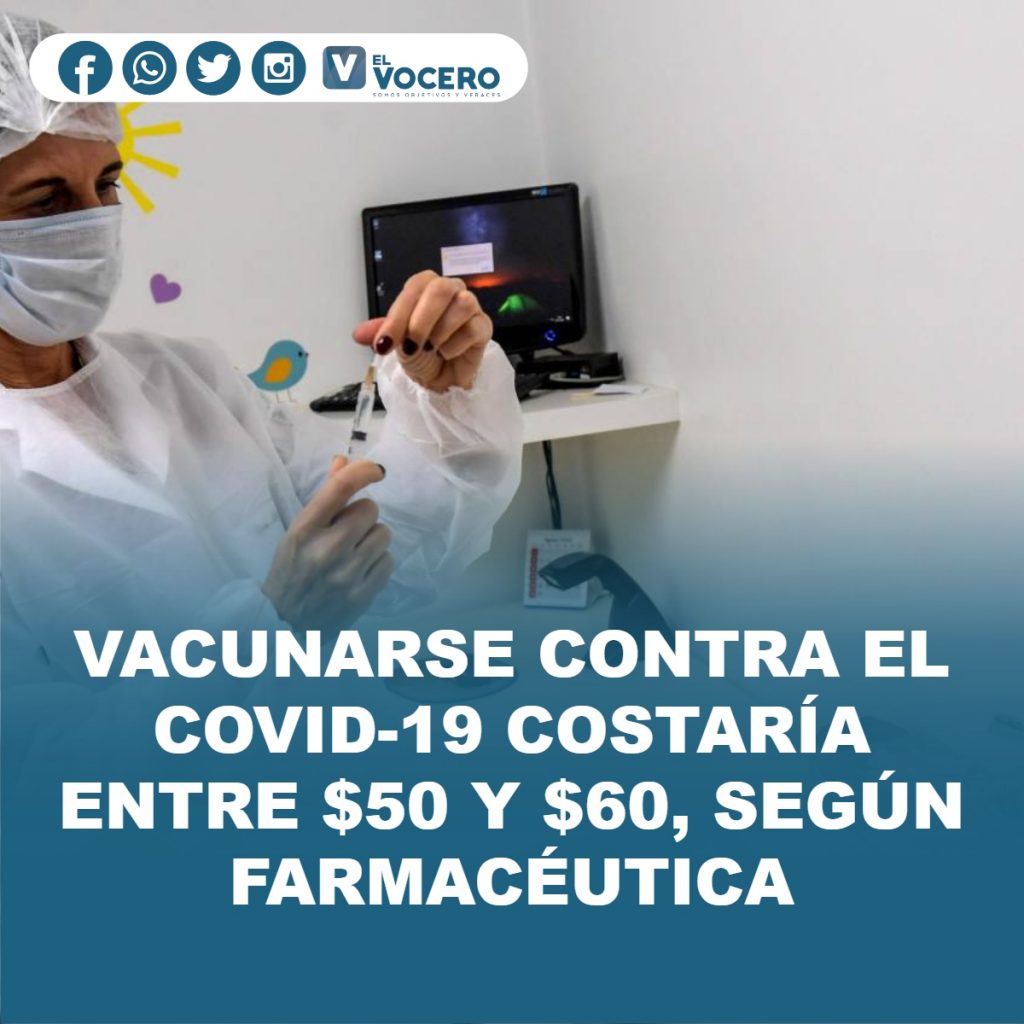 VACUNARSE CONTRA EL COVID-19 COSTARÍA ENTRE $50 Y $60, SEGÚN FARMACÉUTICA