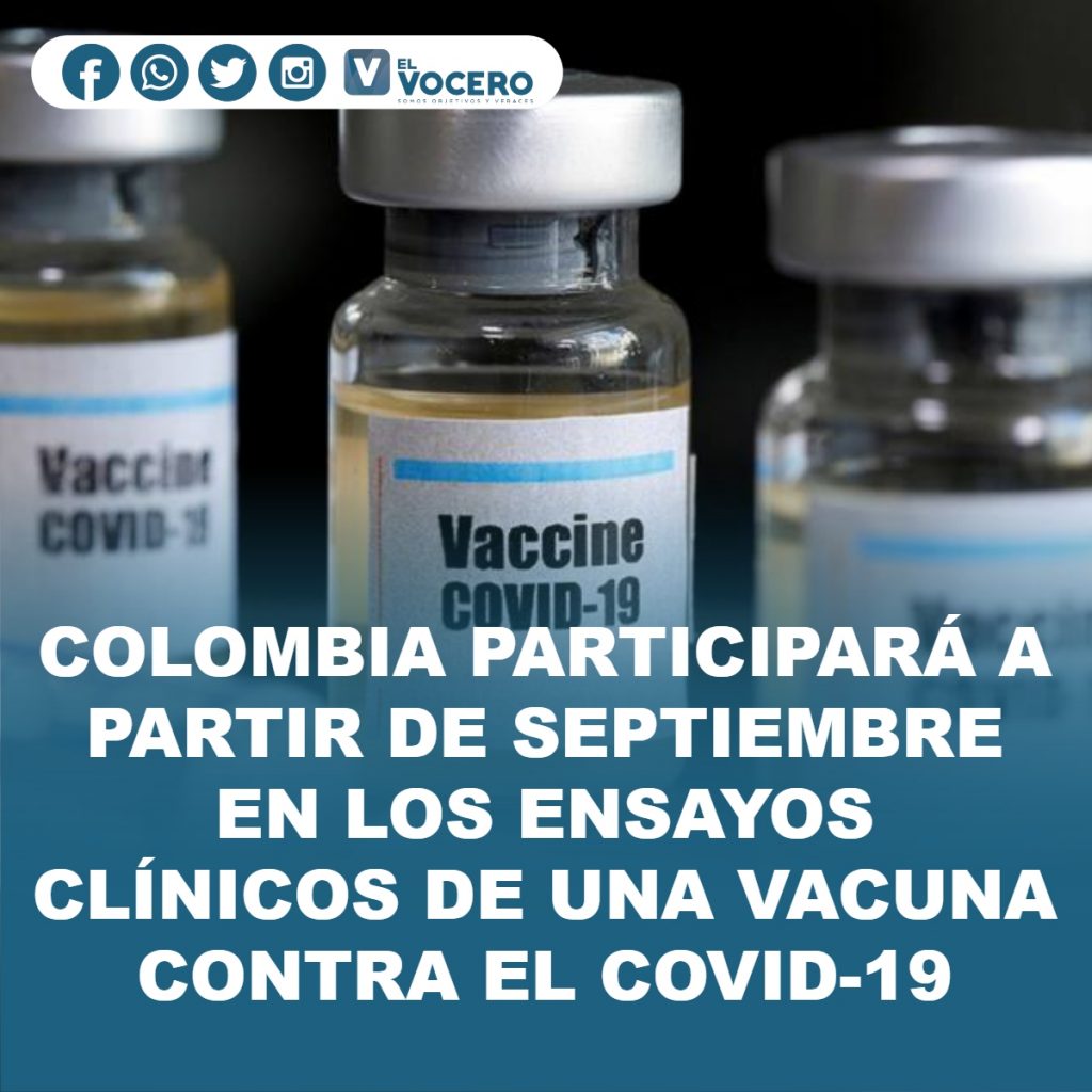 A partir de septiembre, Colombia participará en los ensayos clínicos de una vacuna contra el COVID-19 que está desarrollando la multinacional estadounidense Johnson & Johnson y su grupo de compañías farmacéuticas, Janssen, informaron este lunes fuentes oficiales del primer poder colombiano.