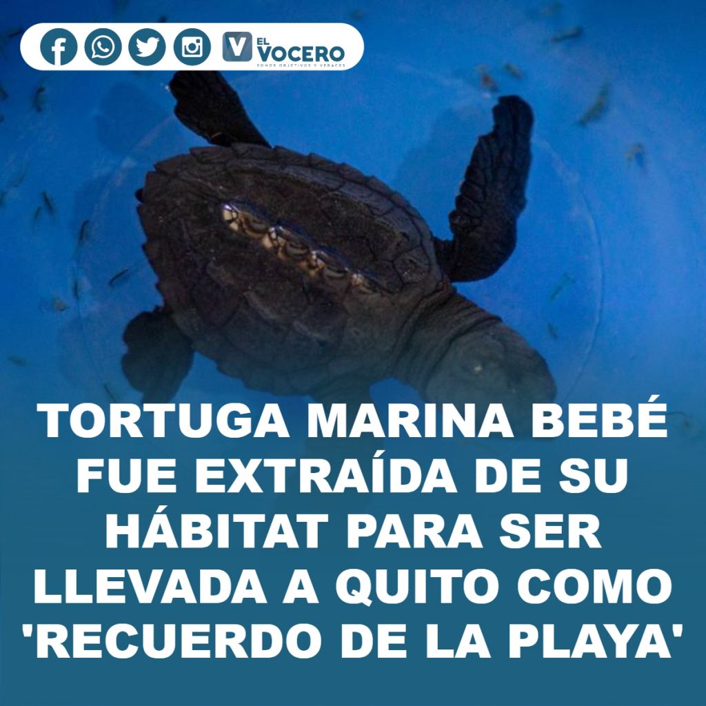 Una tortuga marina bebé llegó el viernes pasado a las instalaciones del Quito Zoo. El reptil fue tomado de un desove que se dio en las playas de Tonsupa, Esmeraldas. La persona que llevó al animal al zoológico indicó «que recibió a la tortuga como un recuerdo traído de un viaje a la playa».