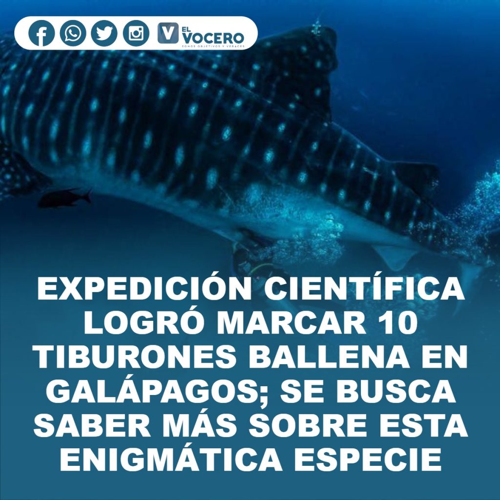 Una expedición de científicos y técnicos organizada entre la Universidad San Francisco de Quito (USFQ) y la Dirección del Parque Nacional Galápagos (DPNG) logró marcar 10 tiburones ballenas durante un viaje de 15 días por el norte del archipiélago.