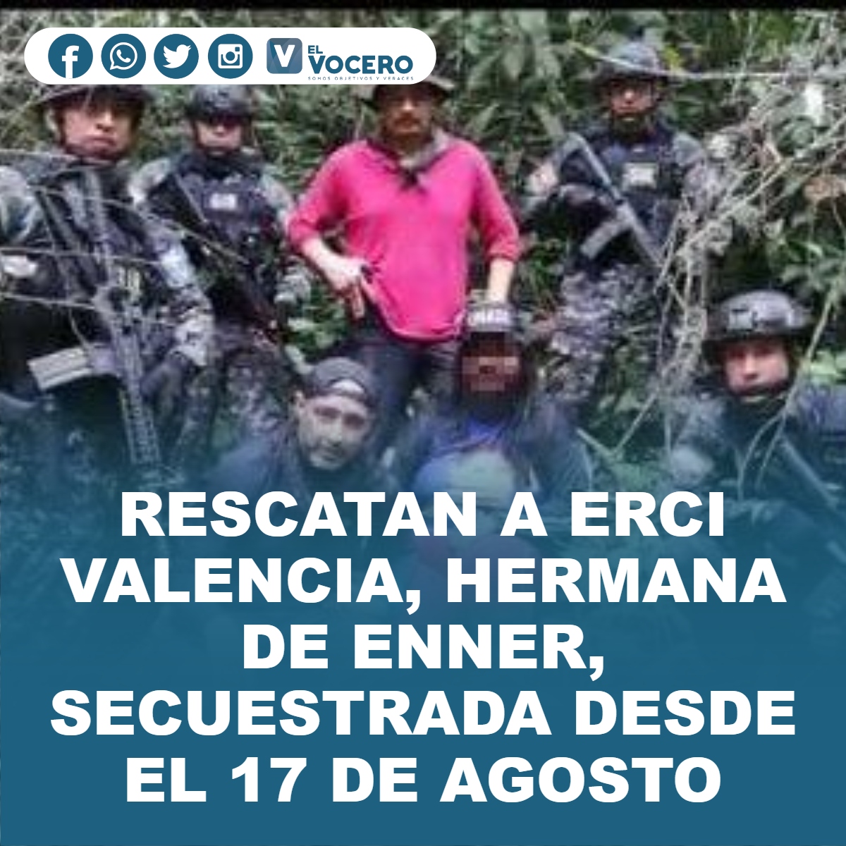 Erci Valencia, secuestrada desde el pasado 17 de agosto, fue liberada la tarde de este viernes 28, informó la ministra de Gobierno, María Paula Romo.