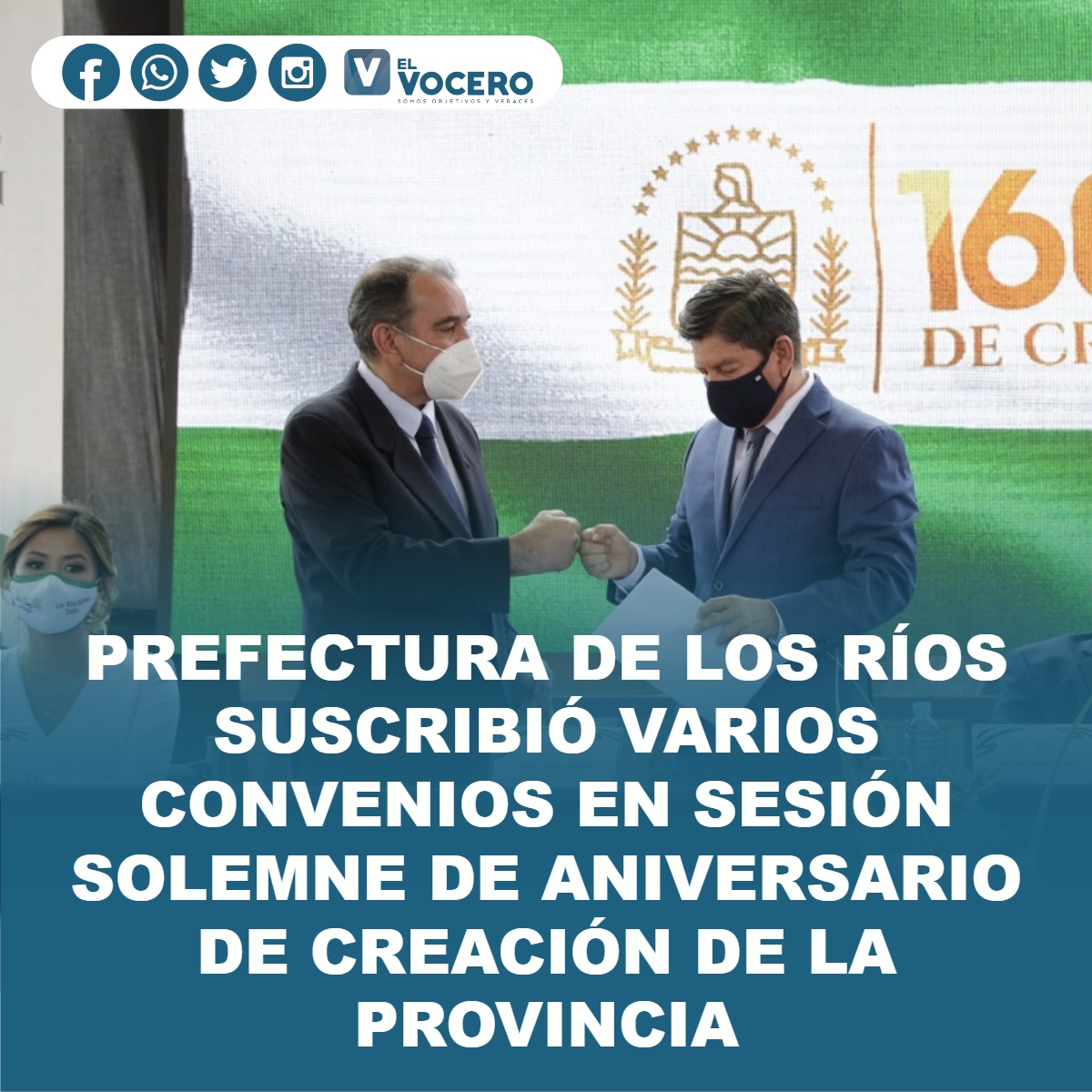 En el marco de la sesión solemne por los 160 años de creación de la provincia de Los Ríos, el prefecto Johnny Terán Salcedo, suscribió importantes convenios de cooperación con varias entidades.