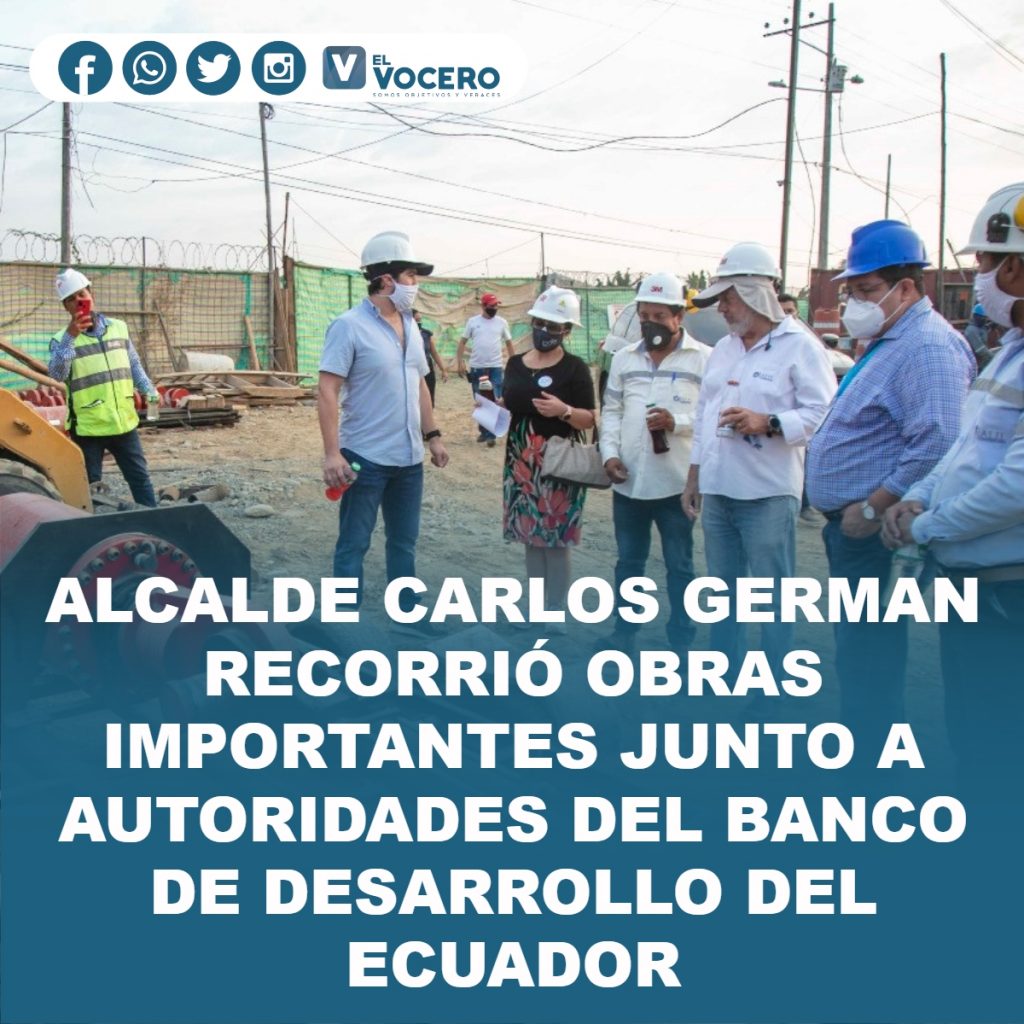 ALCALDE CARLOS GERMAN RECORRIÓ OBRAS IMPORTANTES JUNTO A AUTORIDADES DEL BANCO DE DESARROLLO DEL ECUADOR