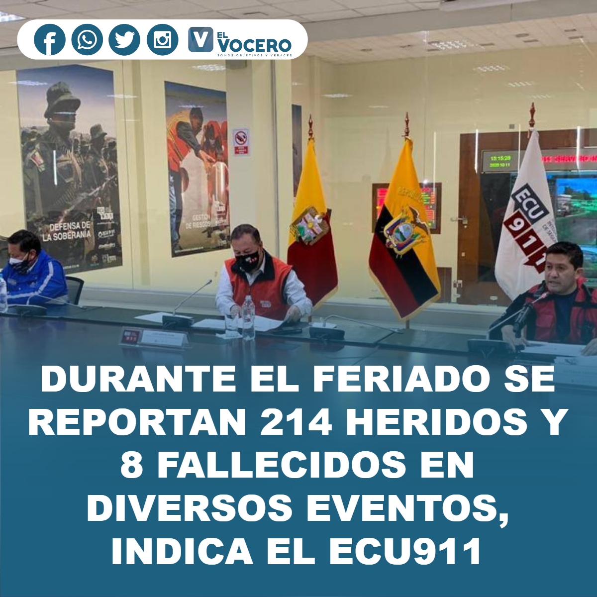En diversas emergencias se registraron 214 heridos y 8 fallecidos a nivel nacional, además se dieron 265 incendios forestales siendo Latacunga (69) y Quito (49) los puntos con los mayores incidentes. (I)
