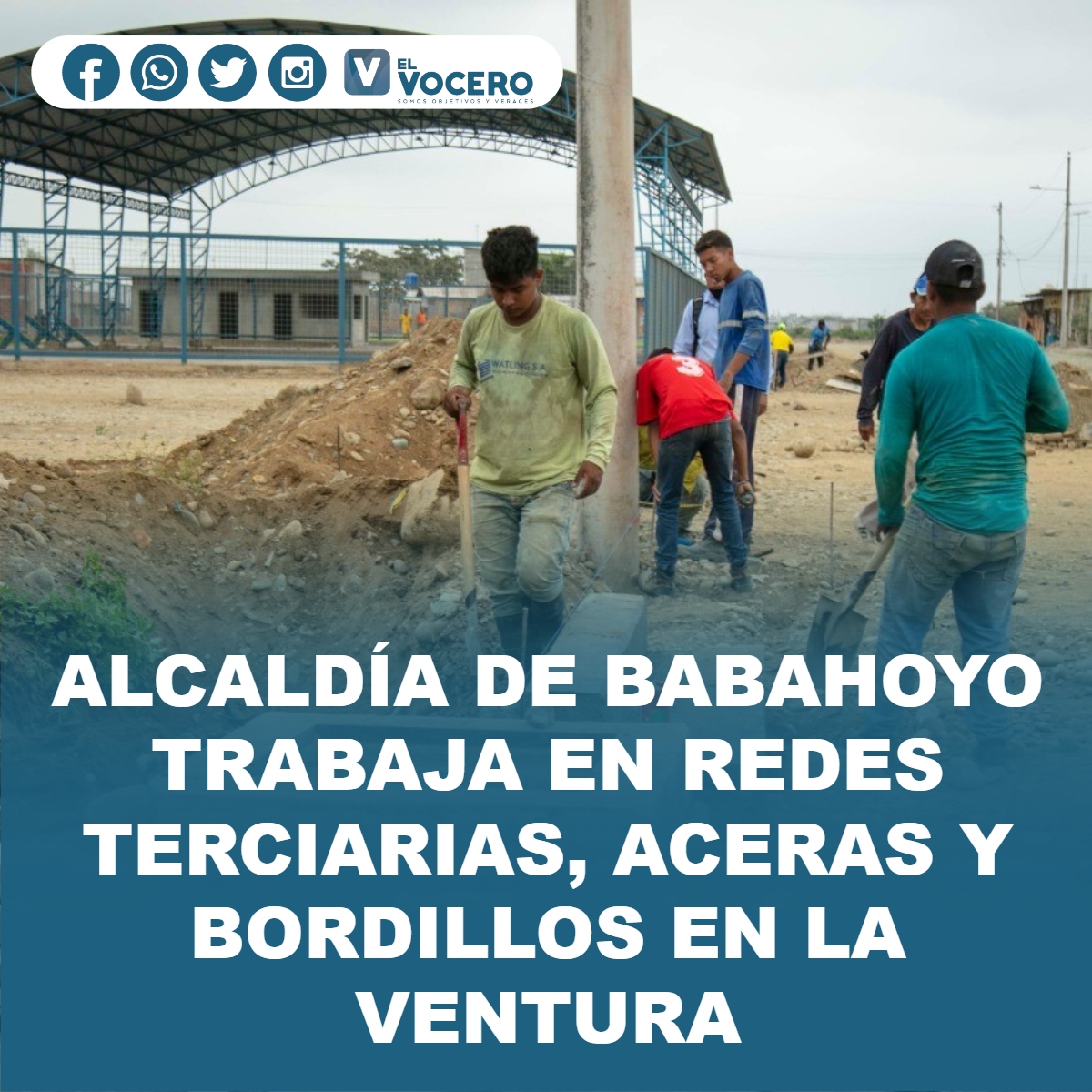 Con el propósito de conectar las redes terciarias (domiciliarias) al sistema de colectores y así facilitar un pleno enlace con la planta de tratamiento de aguas servidas, el trabajo de la Alcaldía de Babahoyo, será llevar un gran beneficio a las familias que habitan en la ciudadela La Ventura.