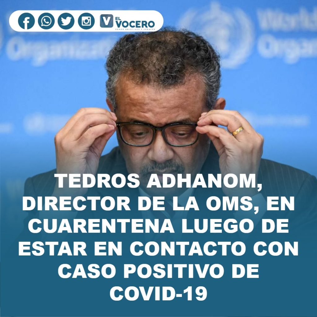 «Me han identificado como un contacto con alguien que ha dado positivo al #COVID19», dijo Adhanom Ghebreyesus en un tuit, antes de agregar: «Estoy bien y no tengo síntomas pero observaré una cuarentena en los próximos días, de acuerdo con los protocolos de la @WHO (por sus siglas en inglés) y trabajo desde casa».