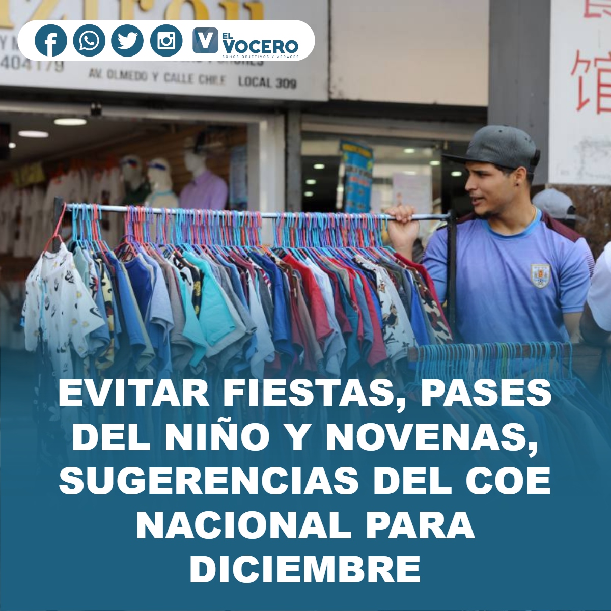 Con miras a que no se den aglomeraciones durante diciembre, uno de los meses de mayor actividad comercial por el pago del decimotercer sueldo a quienes trabajan bajo relación de dependencia, el COE nacional propuso también que los COE cantonales de los 221 municipios del país dispongan restricciones vehiculares los días 24 y 25 de diciembre, al igual que el 31 de diciembre de 2020 y el 1 de enero de 2021.