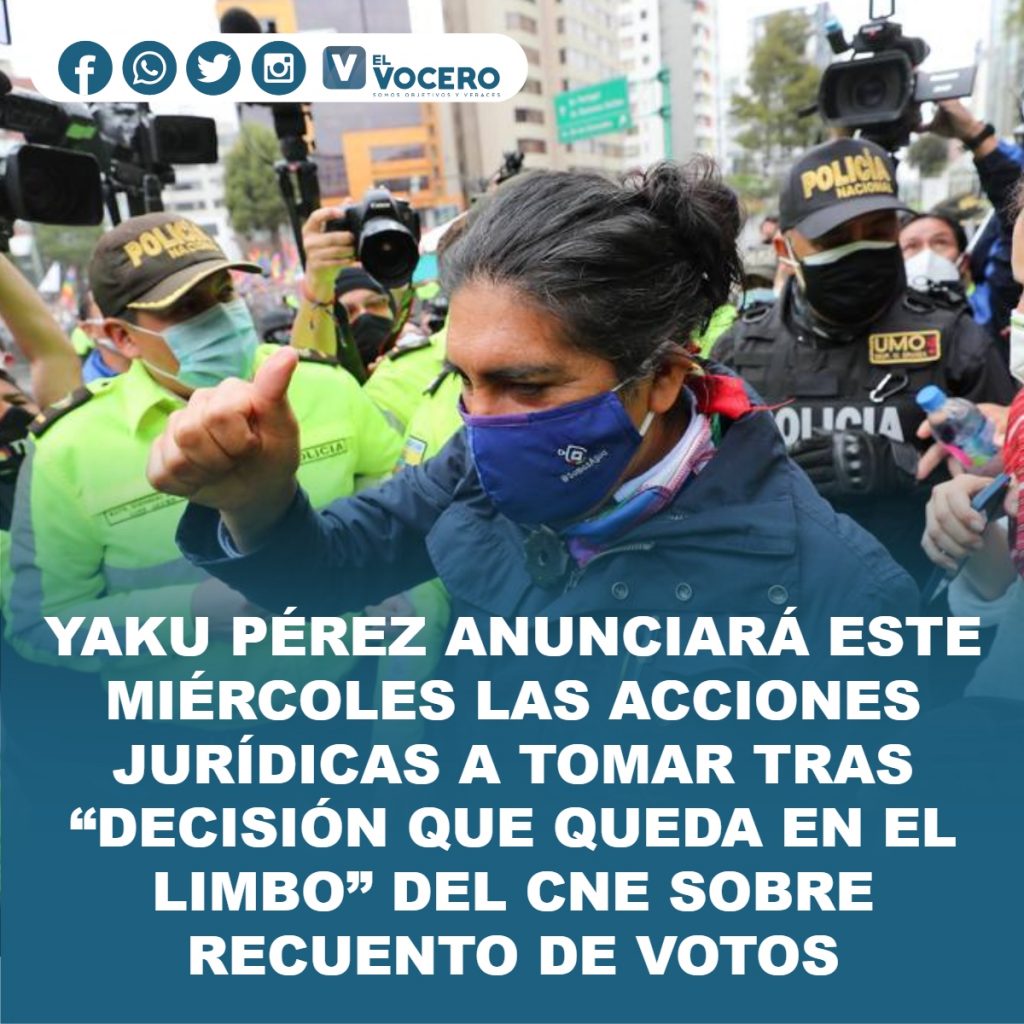 Tras la no aprobación del informe que recomendaba dar paso el recuento parcial de los votos de primera vuelta electoral para presidente de la República, el candidato presidencial por Pachakutik, Yaku Pérez, se pronunció sobre el mismo.
