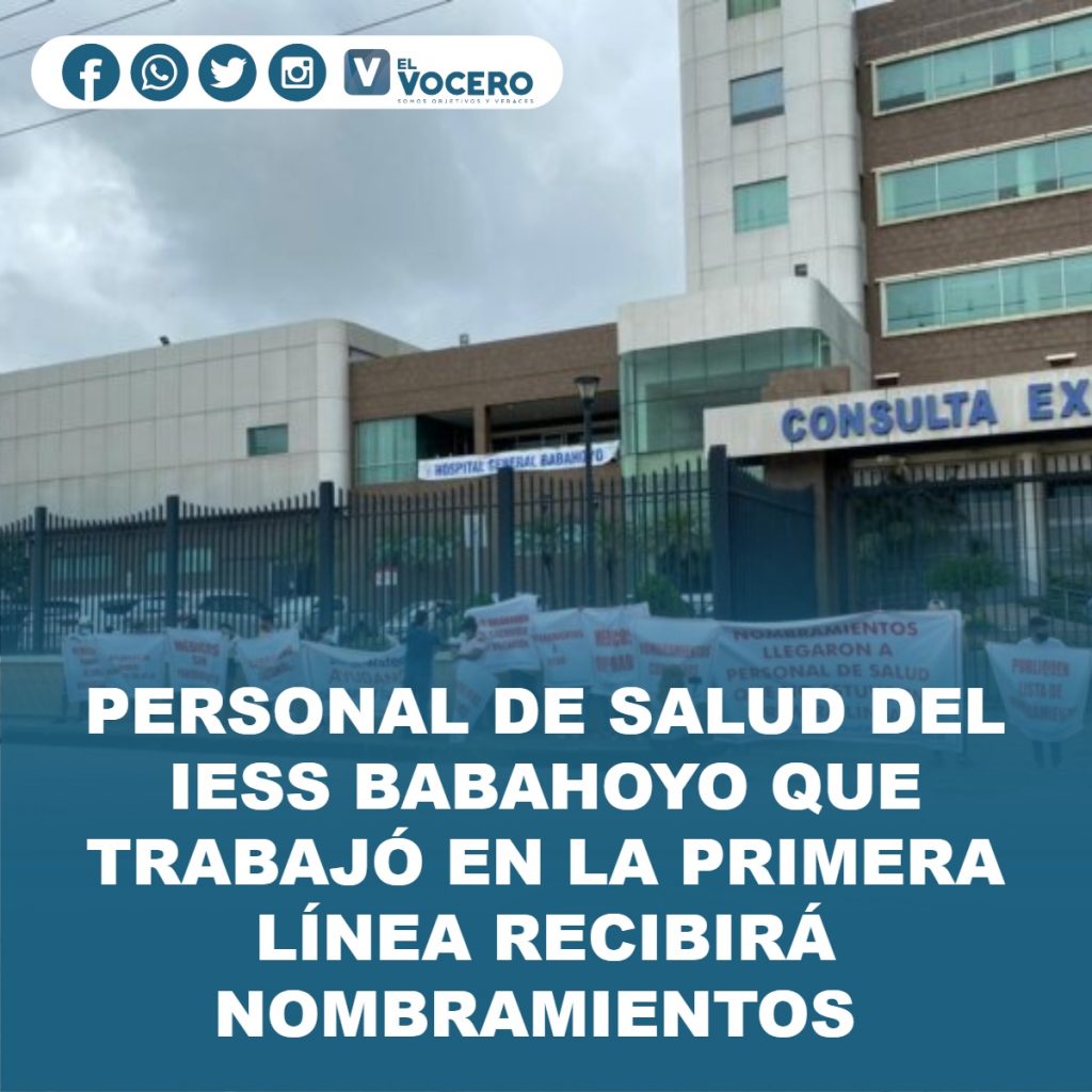 Enfermeras y ex integrantes del personal de salud del Hospital General del IESS Babahoyo y sus familiares protagonizaron una jornada de protesta en las inmediaciones de la casa de salud, para exigir a las autoridades nacionales que los tomen en cuenta en la distribución de los nuevos nombramientos que se expedirán, considerando la Ley Humanitaria decretada por el Gobierno central, en febrero del año 2020, a propósito de la pandemia que afrontamos hasta la fecha.