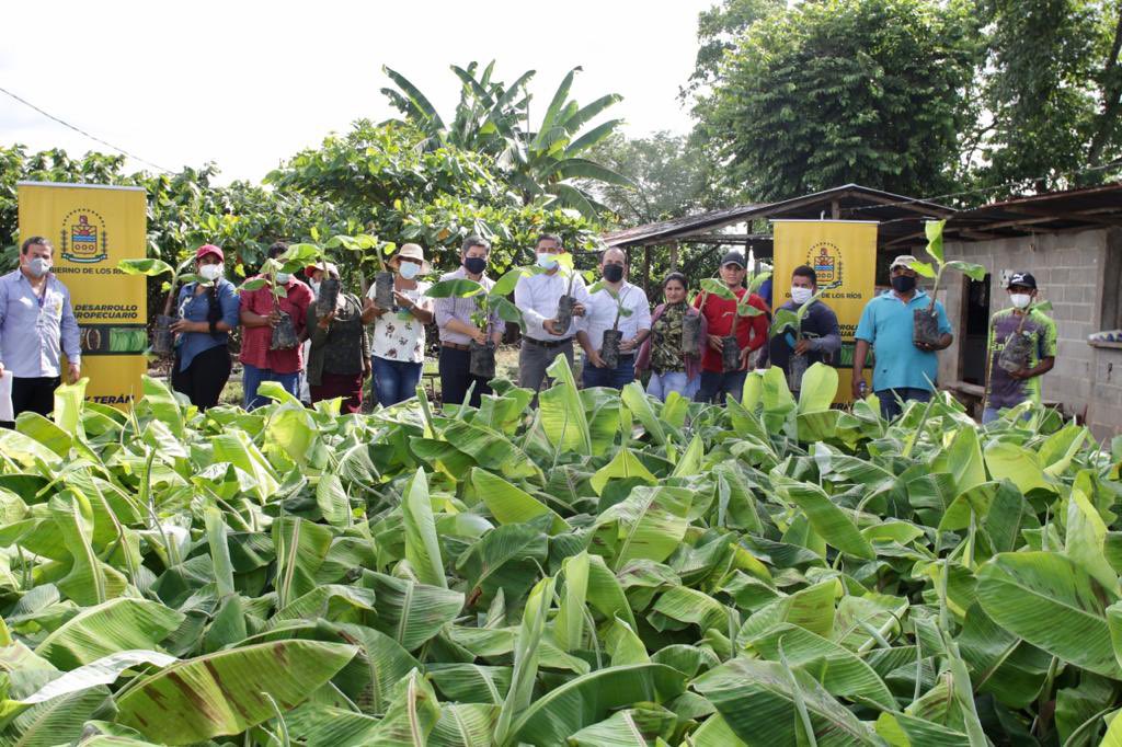 La Prefectura de Los Ríos entregó 8.880 plantas de plátano hartón a los integrantes de la asociación Nuevo Amanecer Campesino del recinto Aguas Frías, con el objetivo de mejorar la actividad socioeconómica en la Provincia.