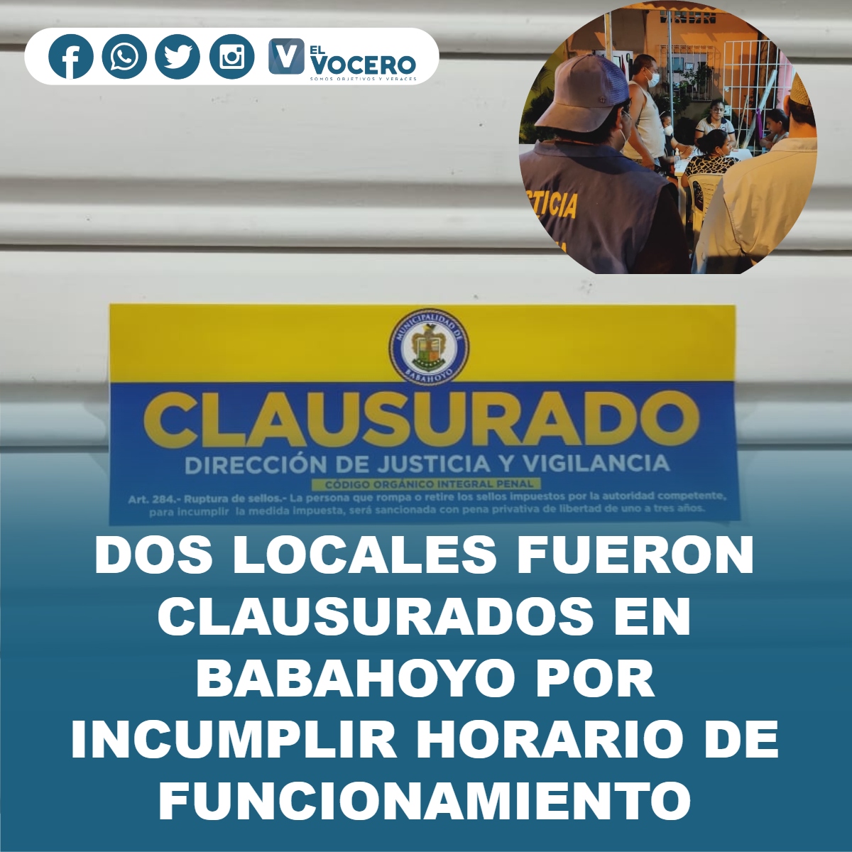 El viernes 2 de abril el segundo día de operativos de control, el personal municipal con la Policía Nacional del Ecuador y ATM-Babahoyo ejecutaron operativos para garantizar el cumplimiento de las medidas dictadas por el COE cantonal.