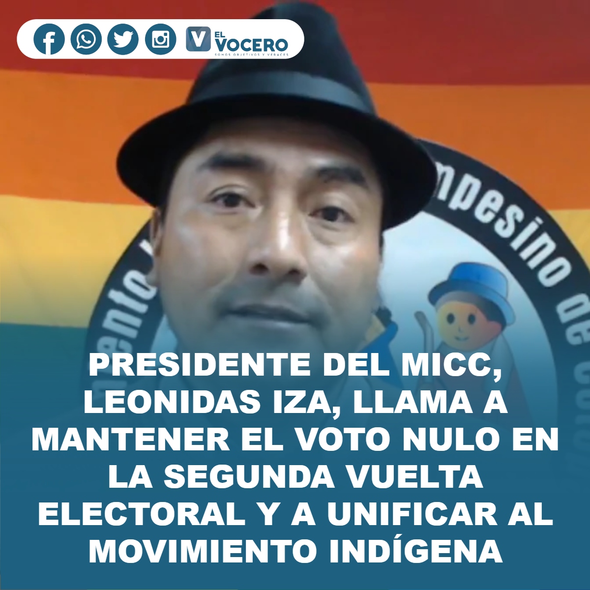 PRESIDENTE DEL MICC, LEONIDAS IZA, LLAMA A MANTENER EL VOTO NULO EN LA SEGUNDA VUELTA ELECTORAL Y A UNIFICAR AL MOVIMIENTO INDÍGENA