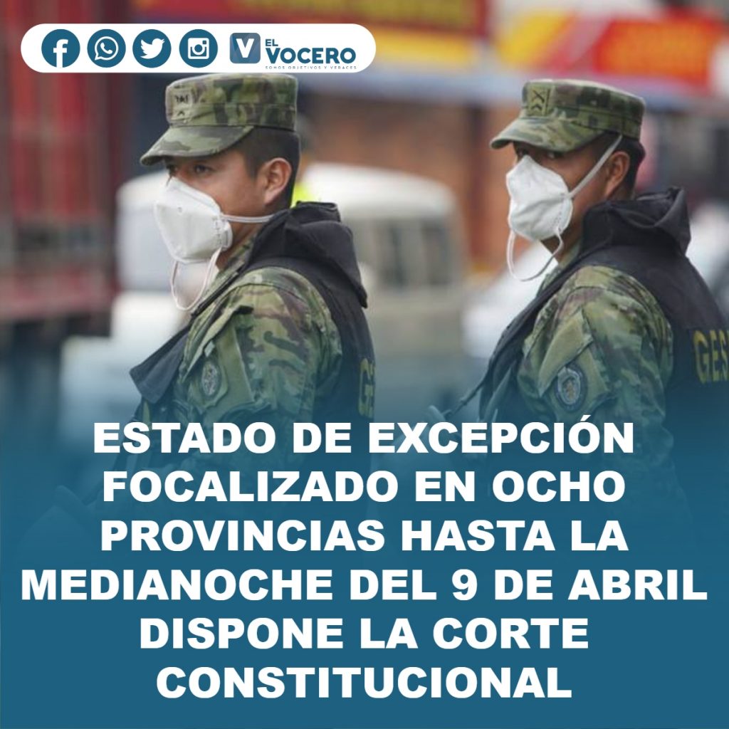 ESTADO DE EXCEPCIÓN FOCALIZADO EN OCHO PROVINCIAS HASTA LA MEDIANOCHE DEL 9 DE ABRIL DISPONE LA CORTE CONSTITUCIONAL