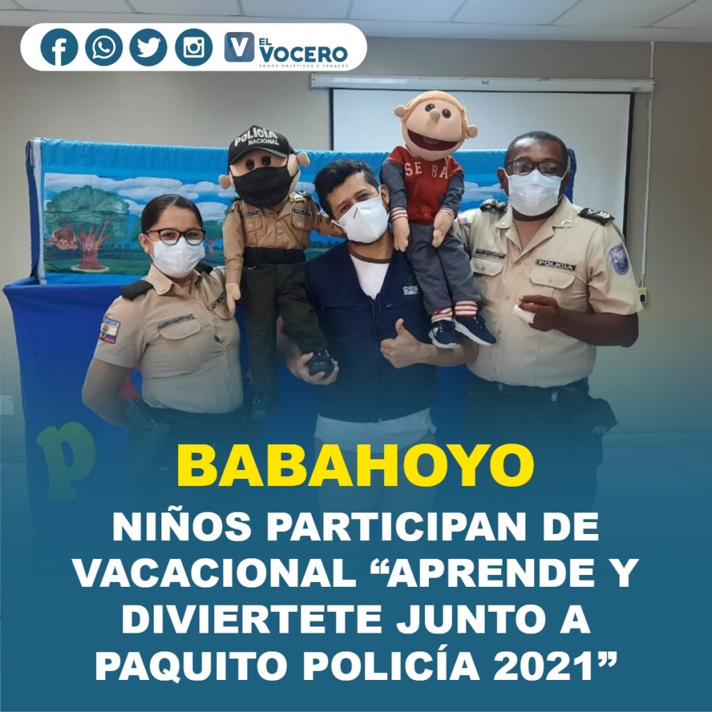 Para mantener en actividad a los niños y niñas del territorio fluminense, el Departamento de Policía Comunitaria del Distrito Babahoyo, ofrece actividades online a través del Curso Vacacional denominado “Aprende y Diviértete Junto a Paquito Policía 2021”, y de esta manera evitar que salgan de sus hogares, previniendo más contagios de COVID-19.