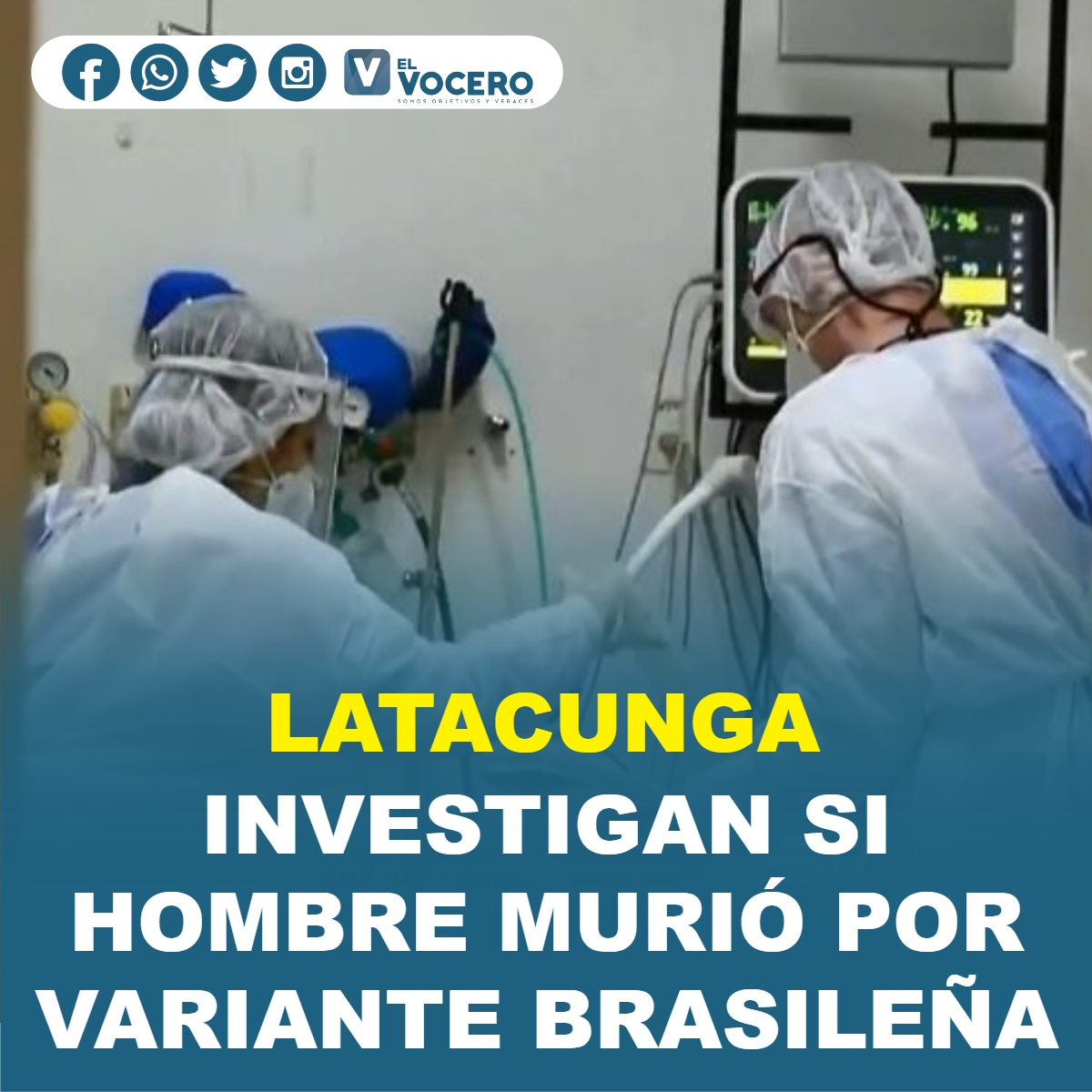 Las autoridades sanitarias investigan si la muerte de un hombre de 31 años en el hospital del Instituto Ecuatoriano de Seguridad Social (IESS) en Latacunga, provincia de Cotopaxi, fue causada por la variante brasileña (P1) de la COVID-19.