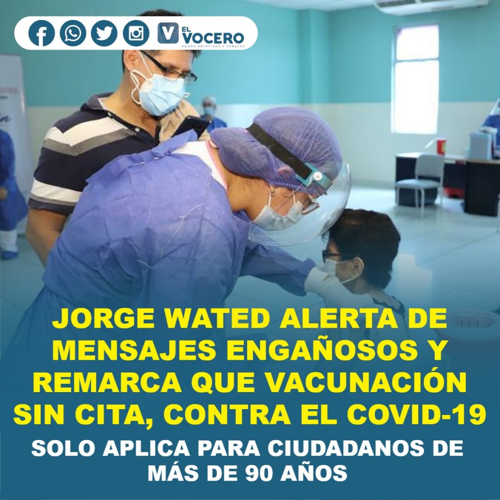 Jorge Wated, secretario del gabinete de la Presidencia de Ecuador, remarcó la noche de este jueves que la vacunación contra el COVID-19 sin cita solo aplica a los ciudadanos mayores de 90 años.