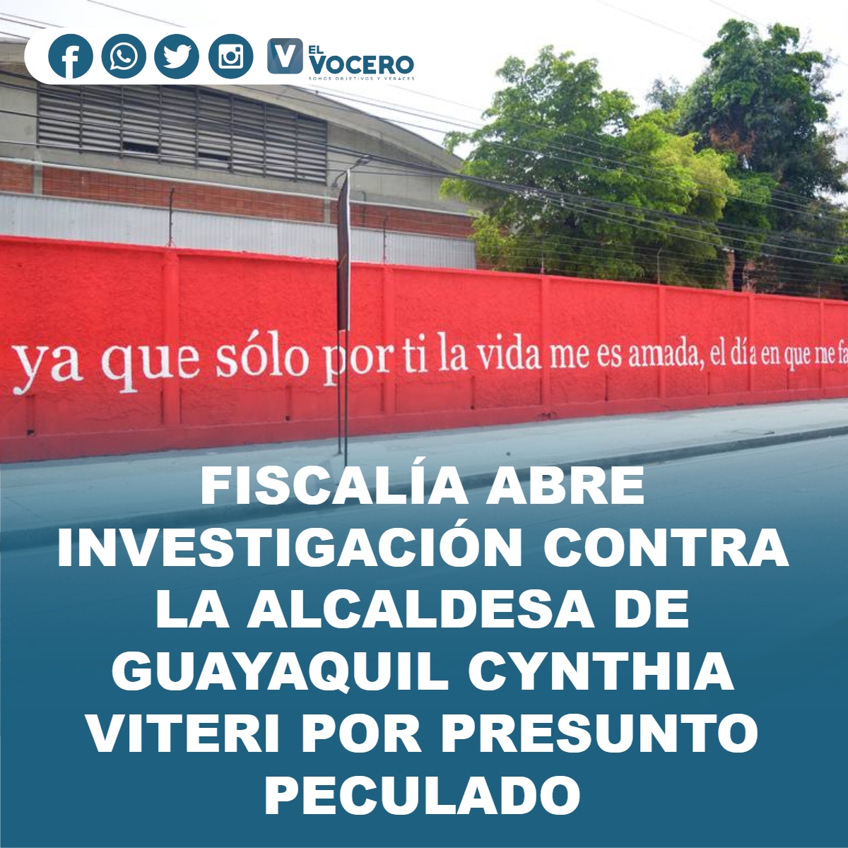 La Fiscalía General del Estado investigará a la alcaldesa de Guayaquil, Cynthia Viteri, y los funcionarios Alfredo Contreras, Xavier Álvarez, Christian Moreano y el contratista Foad Saud, por presunto delito de peculado.
