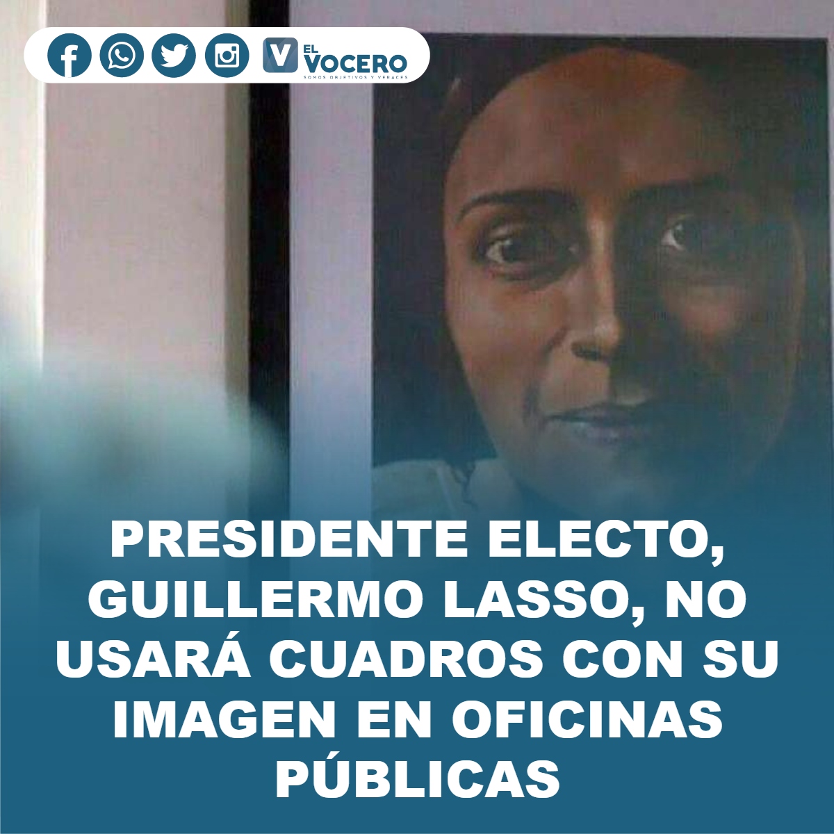 El presidente de la República, Lenín Moreno oficializó a través de su cuenta de Twitter, la decisión tomada por el presidente electo, Guillemo Lasso, de no usar cuadros con su imagen.