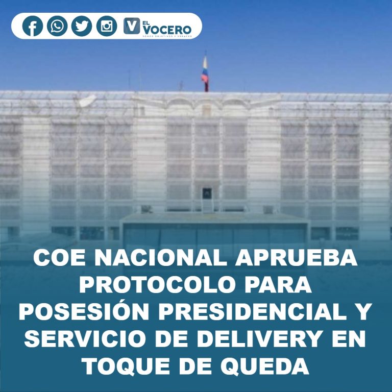 El Comité de Operaciones de Emergencia (COE) Nacional aprobó la noche de este viernes 7 de mayo de 2021 el protocolo para la posesión del presidente electo Guillermo Lasso que presentó la Asamblea Nacional.
