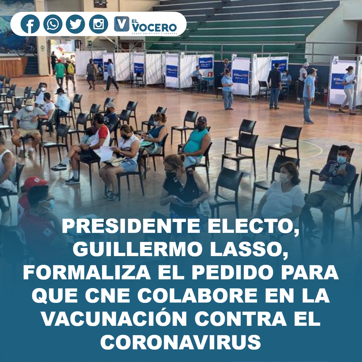 PRESIDENTE ELECTO, GUILLERMO LASSO, FORMALIZA EL PEDIDO PARA QUE CNE COLABORE EN LA VACUNACIÓN CONTRA EL CORONAVIRUS