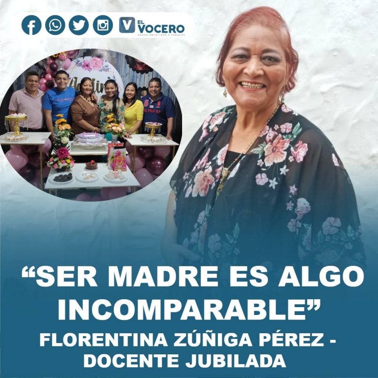 Ser madre para Florentina es la tarea más noble, “es algo incomparable, algo tan lindo, es una responsabilidad muy grande y muy linda, que uno la ejerce con el mayor cariño con la mayor comprensión y se siente regocijado, satisfecho, cuándo ve que la planta que usted sembró le dio un buen fruto y es lo que ha pasado en mi vida he cosechado a plenitud”, enfatiza. (I)