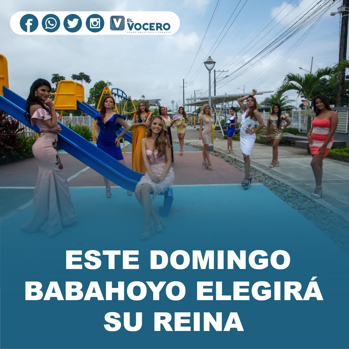 Once hermosas babahoyenses, son las candidatas oficiales para el certamen de belleza Reina de Babahoyo 2021, evento que se desarrollará el domingo 23 de Mayo del 2021, a partir de las 19h00 y que será transmitido por la cuenta de Facebook de la Municipalidad.