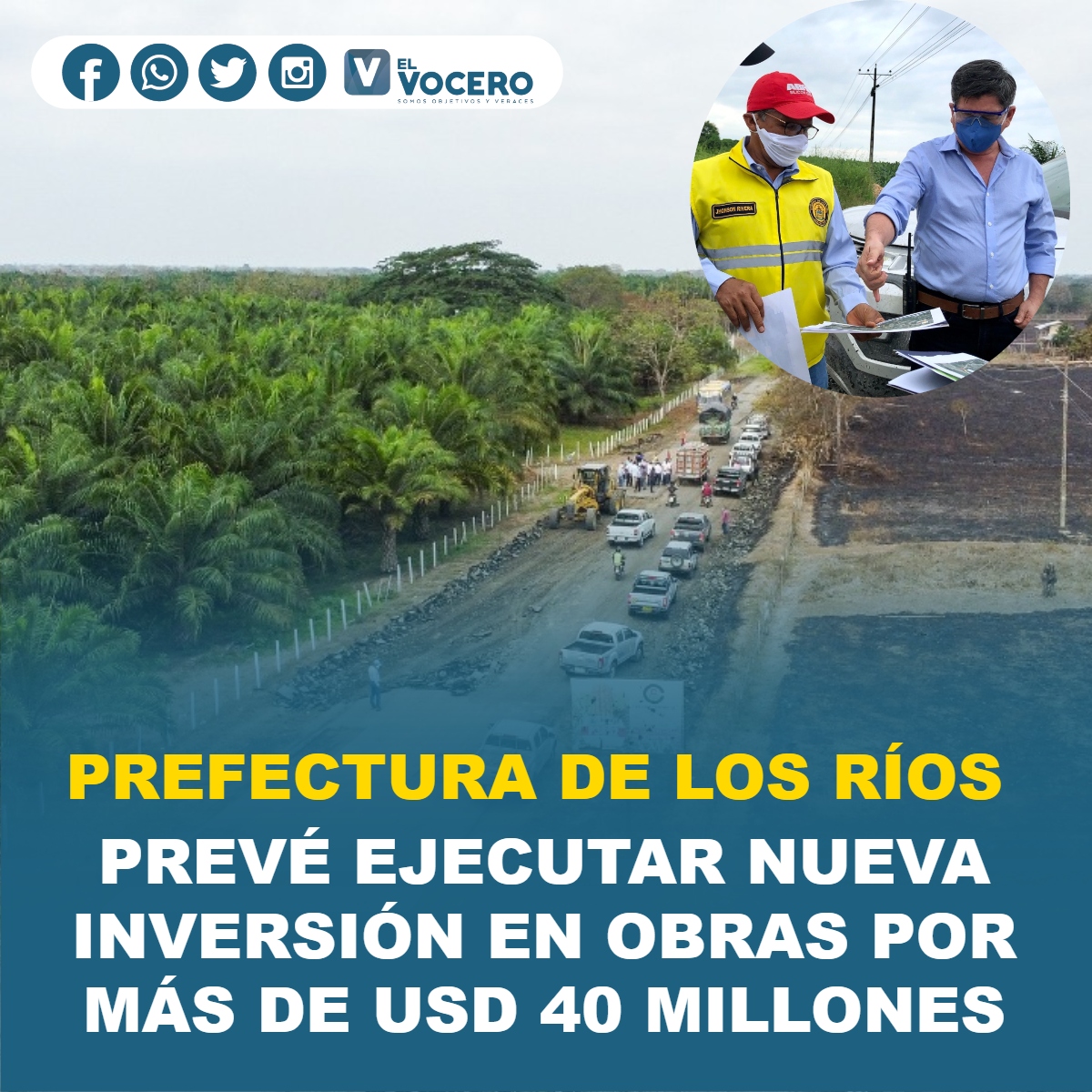El Prefecto de Los Ríos, Johnny Terán Salcedo, anunció que prepara, junto a su equipo técnico, un nuevo plan de obras, a ejecutarse a finales del año 2021, con una inversión superior a los 40 millones de dólares.