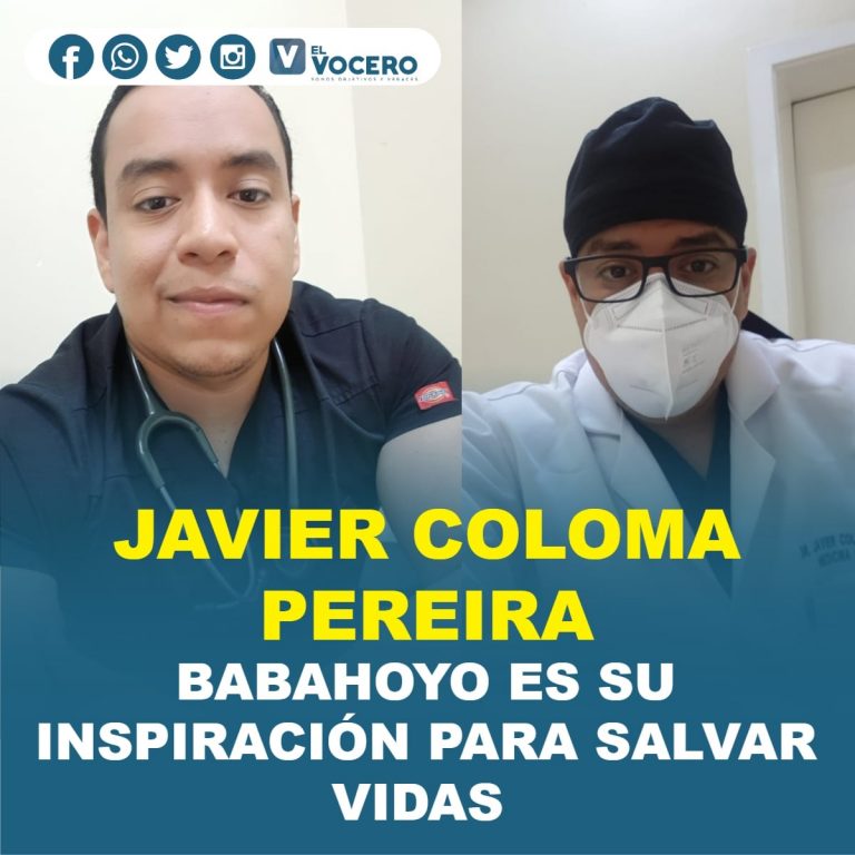 Javier Coloma Pereira es médico de profesión, tiene 31 años, ha sido un elemento indispensable en la lucha contra el COVID – 19. Hace 4 años trabaja en el Hospital IESS Babahoyo, ser babahoyense es su mayor orgullo, considera que la parte más importante de su vida está en la Capital de Los Ríos.