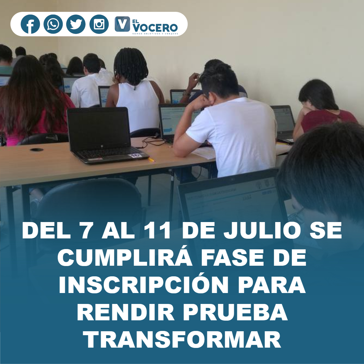 La etapa de inscripción para tomar la prueba Transformar y así acceder a un cupo de la educación superior pública se iniciará desde el mediodía de este miércoles 7 hasta las 23:30 del domingo 11 de julio.