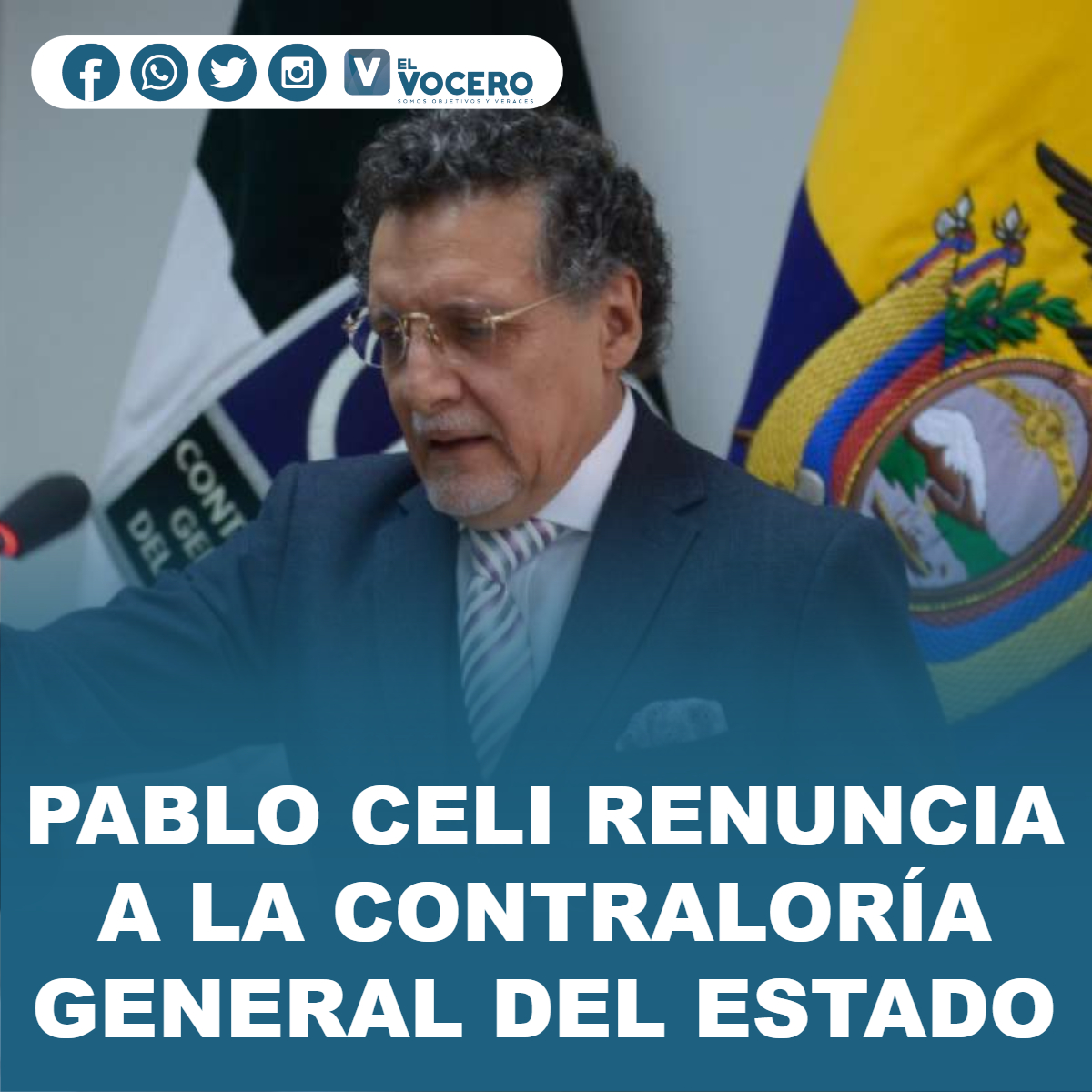 Pablo Celi renunció a la Contraloría General del Estado la tarde de este lunes 5 de julio de 2021. El exfuncionario de Estado presentó su dimisión ante el Consejo de Participación Ciudadana y Control Social (CPCCS), según confirmó el consejero Hernán Ulloa.