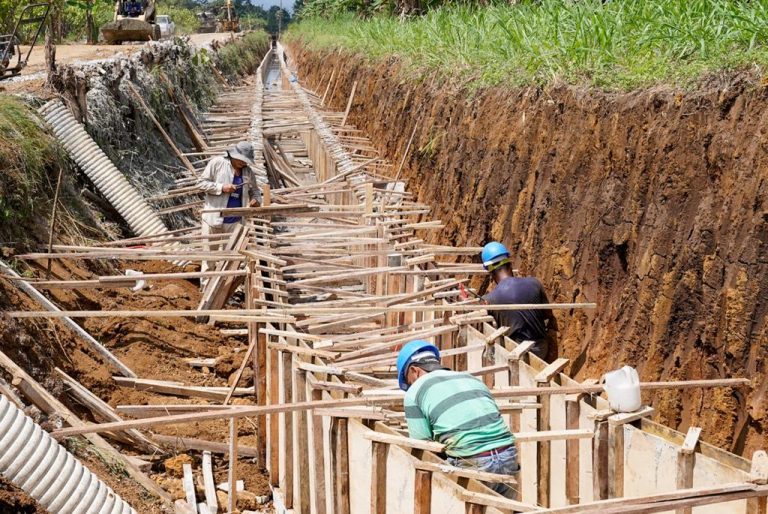 Estamos construyendo un canal de hormigón simple en el sector Loma de Coco del recinto Estero de Piedra. Este acueducto permitirá regar en verano las plantaciones de cacao, banano y otros cultivos del sector.
