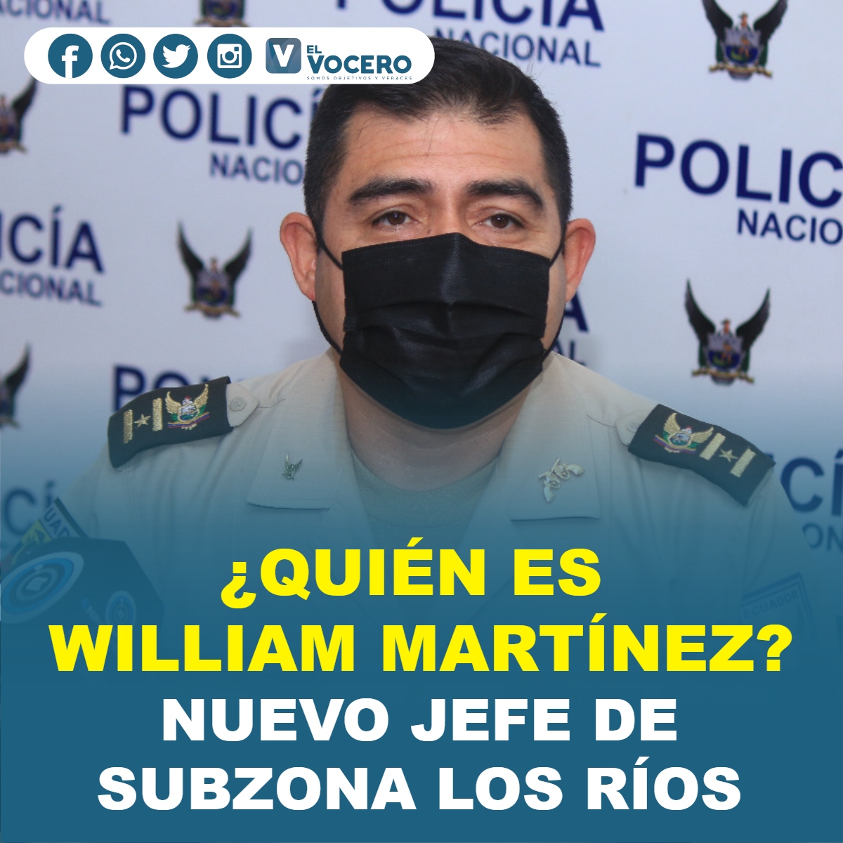 ° El flamante comandante de la Policía Nacional Subzona Los Ríos, William Martínez, ha ostentado diferentes cargos dentro de la institución. Fue jefe de Investigaciones Especiales en Guayaquil, jefe de Antinarcóticos de Esmeraldas, jefe de la Unidad de Lucha Contra el Crimen Organizado a escala nacional, jefe del Distrito de Policía San Lorenzo (Esmeraldas), jefe de Antinarcóticos de Manabí, subdirector nacional de Microtráfico, jefe de la Policía Judicial de Quito, subdirector nacional de la Policía Judicial.