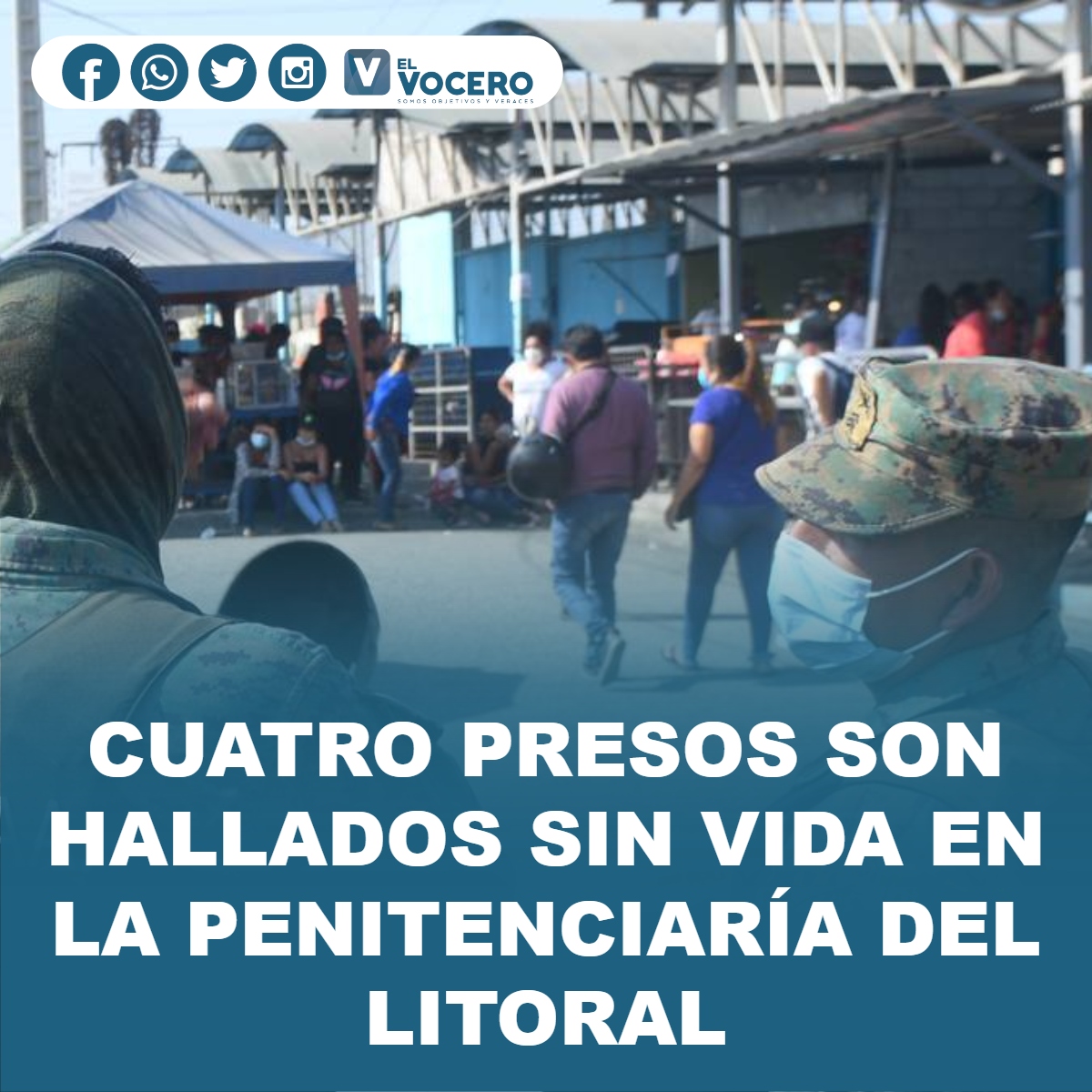 El Servicio Nacional de Atención Integral a Personas Adultas Privadas de la Libertad y Adolescentes Infractores del Ecuador (SNAI) reportó el presunto suicidio de cuatro reos en el pabellón 8 de la Penitenciaría del Litoral, donde a fines de septiembre se registró una masacre de 119 presos.