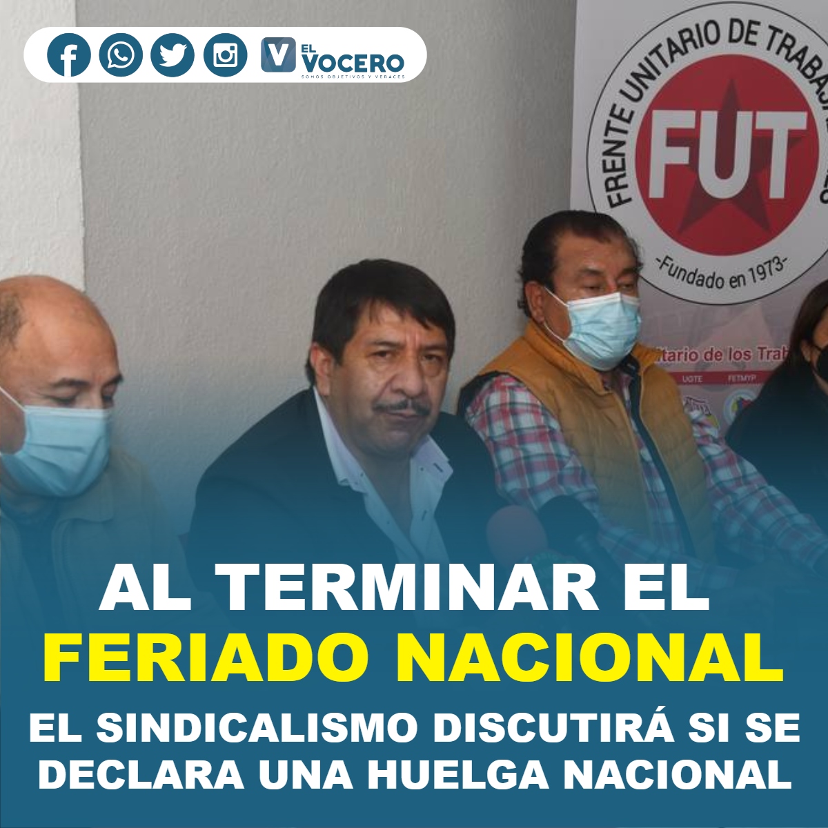 “Luego de que volvamos del famoso feriado largo, convocaremos a una convención donde analizaremos la declaratoria a una huelga nacional”, anunció el presidente del Frente Unitario de Trabajadores (FUT), Ángel Sánchez, en una declaración pública realizada este 27 de octubre de 2021.