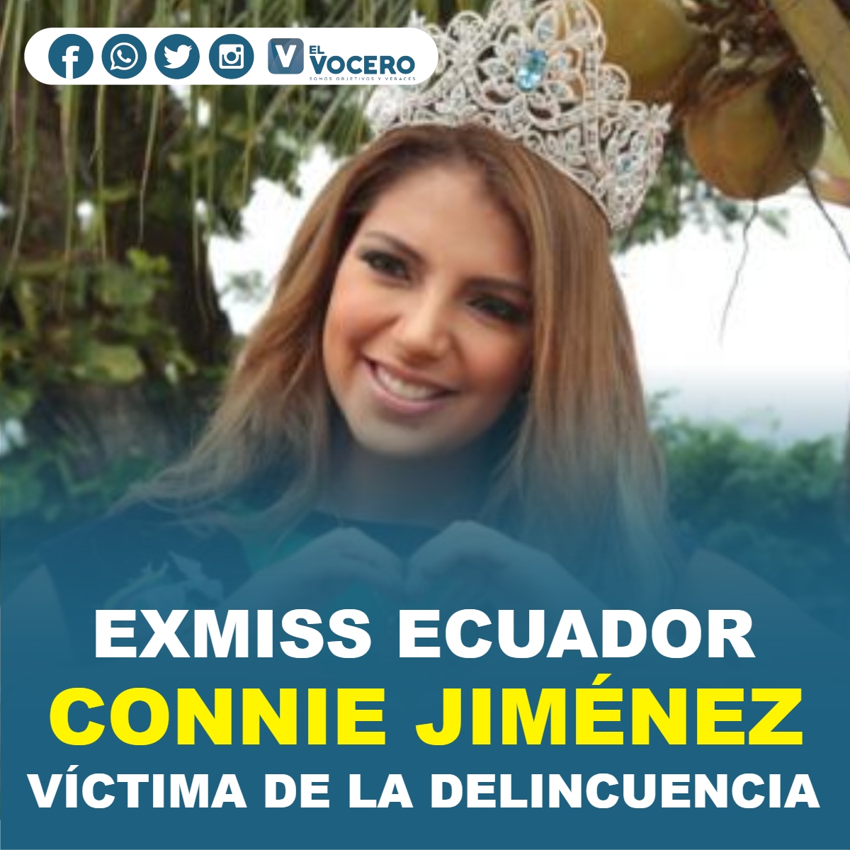 Connie Jiménez es conocida por haber sido Miss Ecuador entre 2015 y 2016. Fue candidata a la Asamblea Nacional en las pasadas elecciones y se ha mostrado políticamente activa en los últimos meses.