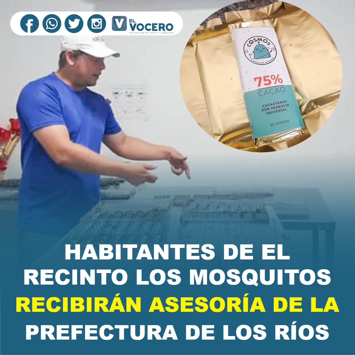 En el recinto Los Mosquitos, el equipo de la Dirección de Emprendimiento e innovación de la Prefectura de Los Ríos, se reunió con los directivos de la Asociación de Producción Agrícola que lleva el mismo nombre, quienes se dedican a la producción del chocolate artesanal «COSMO» dentro de la Provincia.