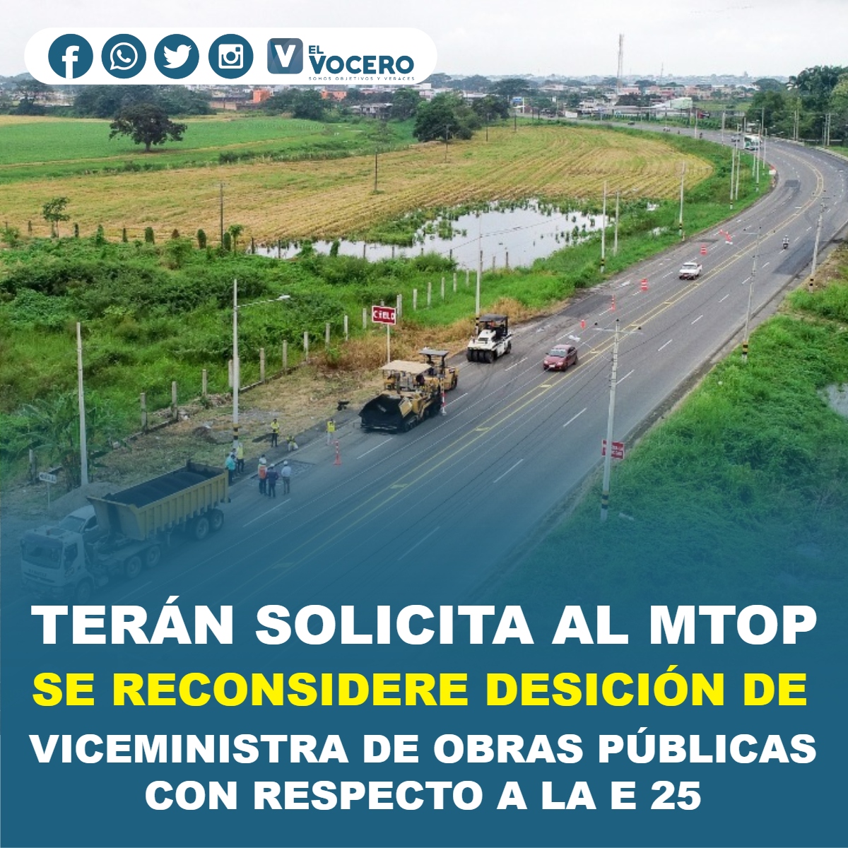 Mediante una entrevista realizada en un medio de comunicación nacional, el prefecto Johnny Terán Salcedo, dio a conocer detalles sobre el convenio que mantiene la Prefectura de Los Ríos con el MTOP, respecto al mantenimiento de la carretera E-25.