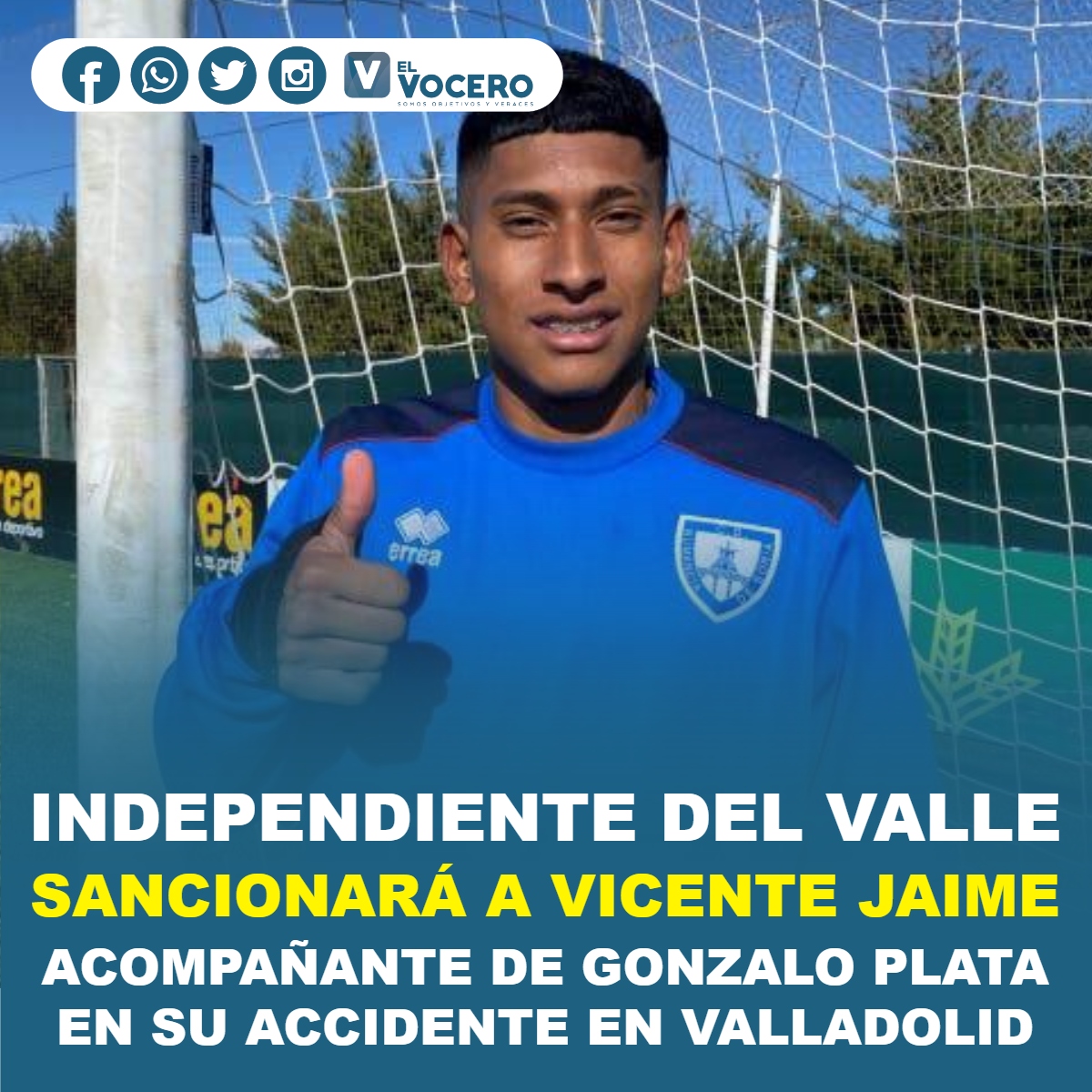Independiente del Valle lanzó un comunicado explicando que “lamenta” lo sucedido con el jugador de sus registros Vicente Jaime, quien era el acompañante de Gonzalo Plata en el accidente que sufrieron los futbolistas la madrugada de este miércoles en Valladolid, España.
