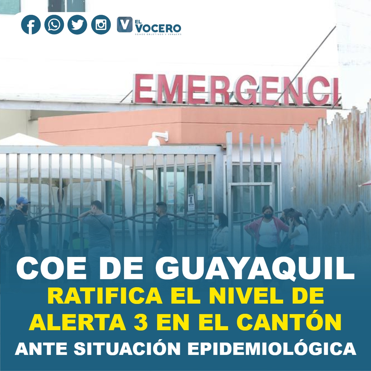 El Comité de Operaciones de Emergencia (COE) de Guayaquil ratificó el nivel de alerta 3 en el cantón debido a su situación epidemiológica.