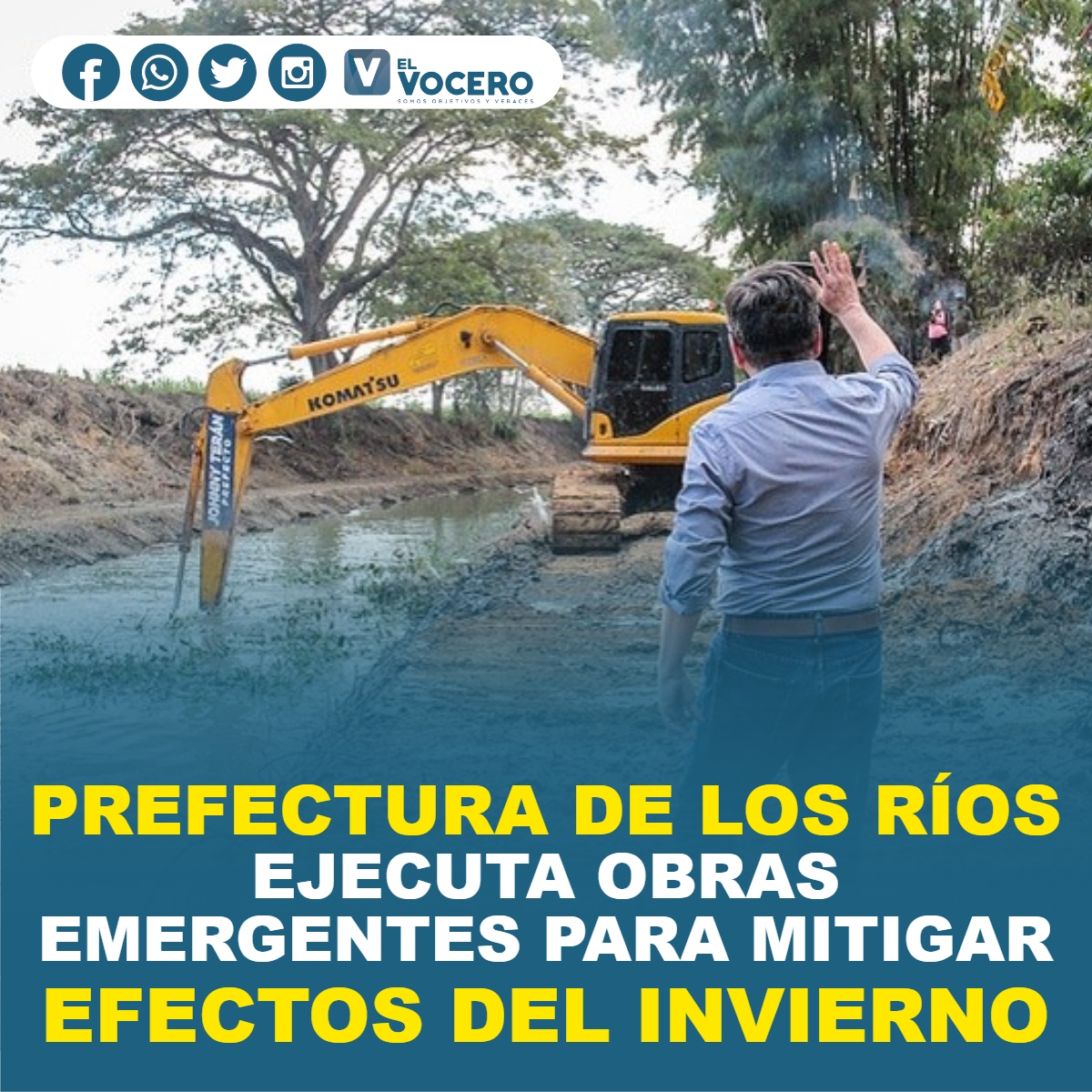En el río Oncebi, del sector La Industria de Chacarita, de Ventanas, se realizan trabajos similares de desazolve, encauzamiento y muro de protección del afluente. Asimismo, en la parroquia La Esperanza del cantón Quevedo, se realiza limpieza y desazolve de varios esteros y canales.