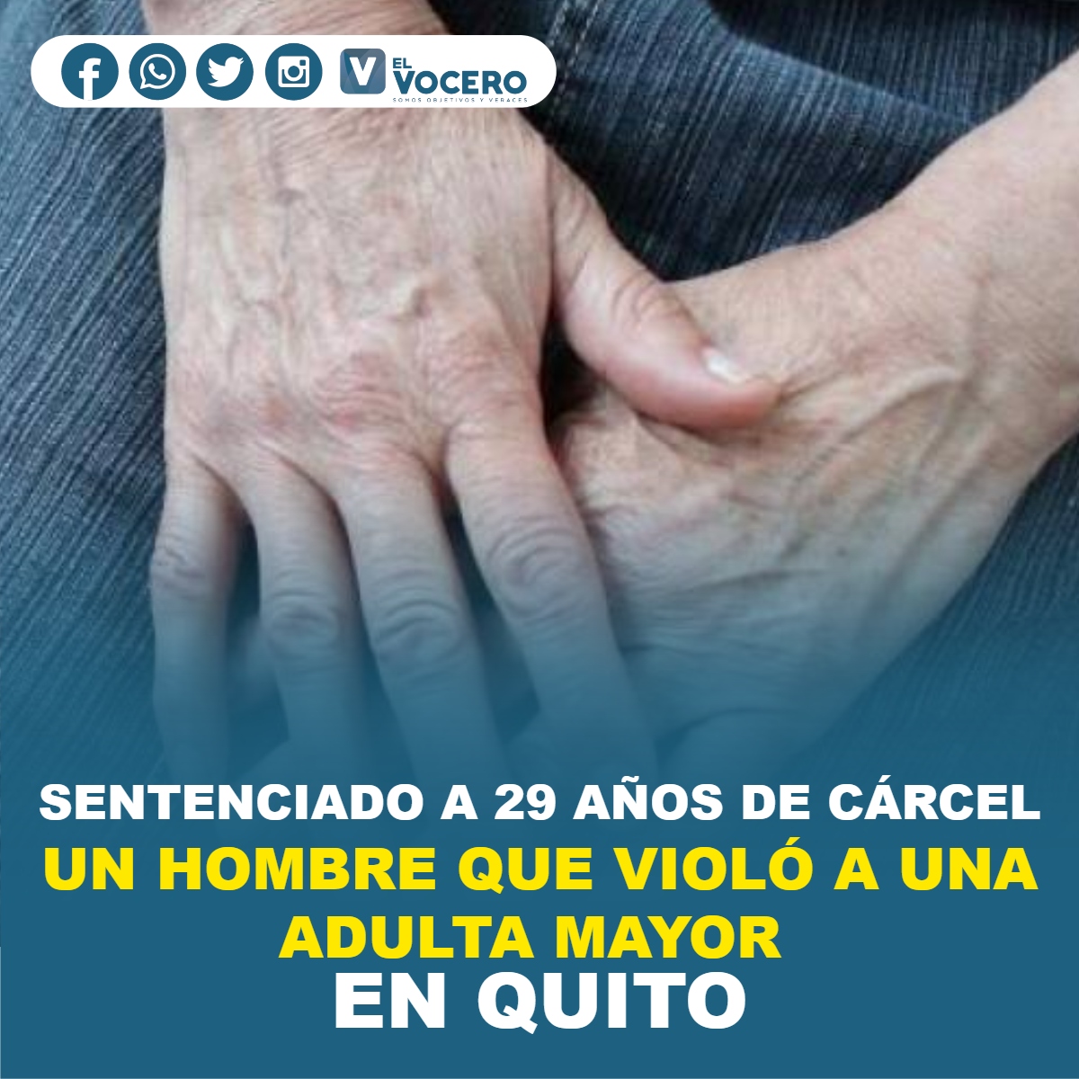 Un Tribunal de Garantías Penales de Pichincha sentenció a 29 años de cárcel a un hombre que violó a su vecina, una adulta mayor que tiene una discapacidad intelectual del 92%, condiciones que se consideraron como agravantes para su condena.