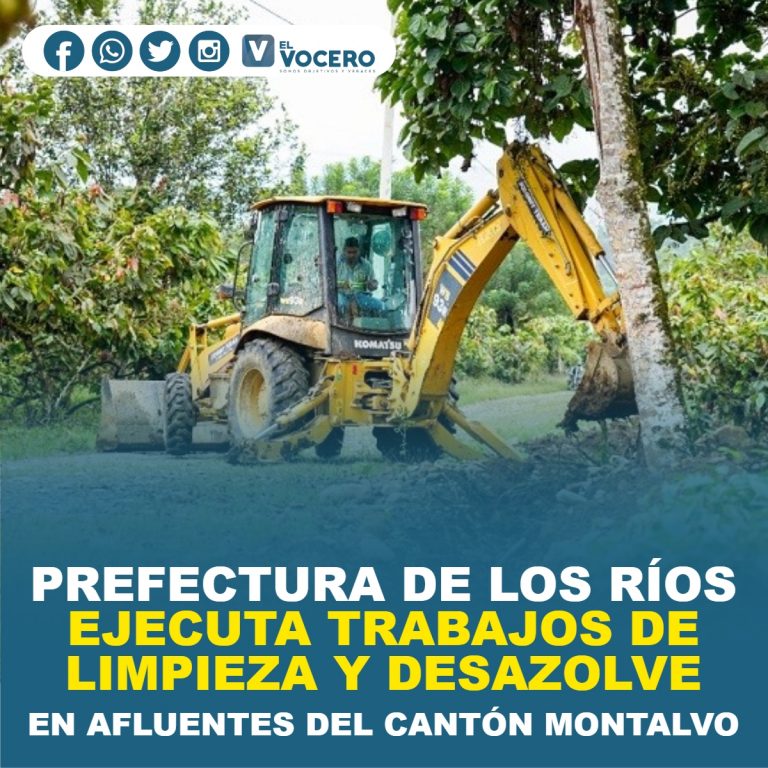 Maquinarias de la Prefectura de Los Ríos trabajan de manera planificada en varios sectores del cantón Montalvo, desarrollando labores de limpieza, desazolve y encauzamiento de ríos, esteros y canales.