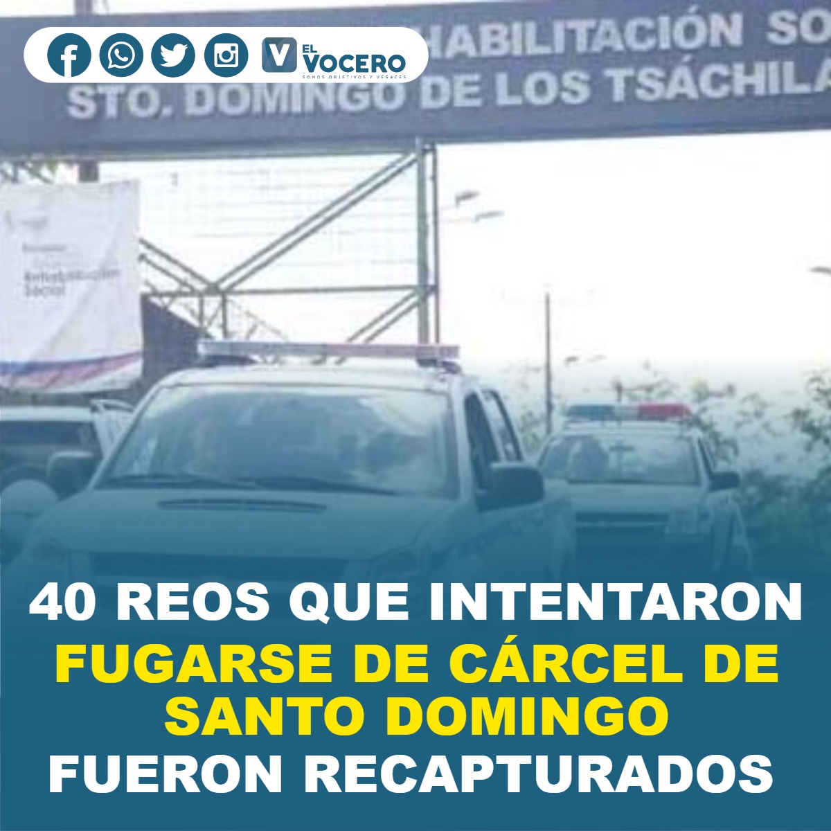 Home»Vocero Deportivo»Los Ríos»Locales»40 REOS QUE INTENTARON FUGARSE DE CÁRCEL DE SANTO DOMINGO FUERON RECAPTURADOS