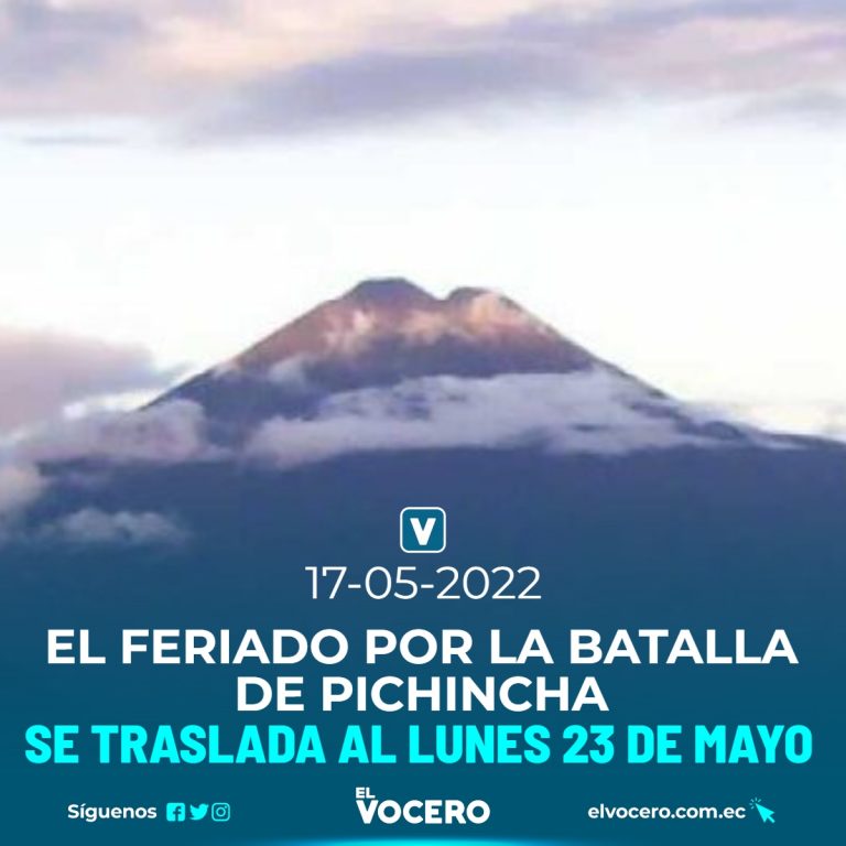 EL FERIADO POR LA BATALLA DE PICHINCHA SE TRASLADA AL LUNES 23 DE MAYO