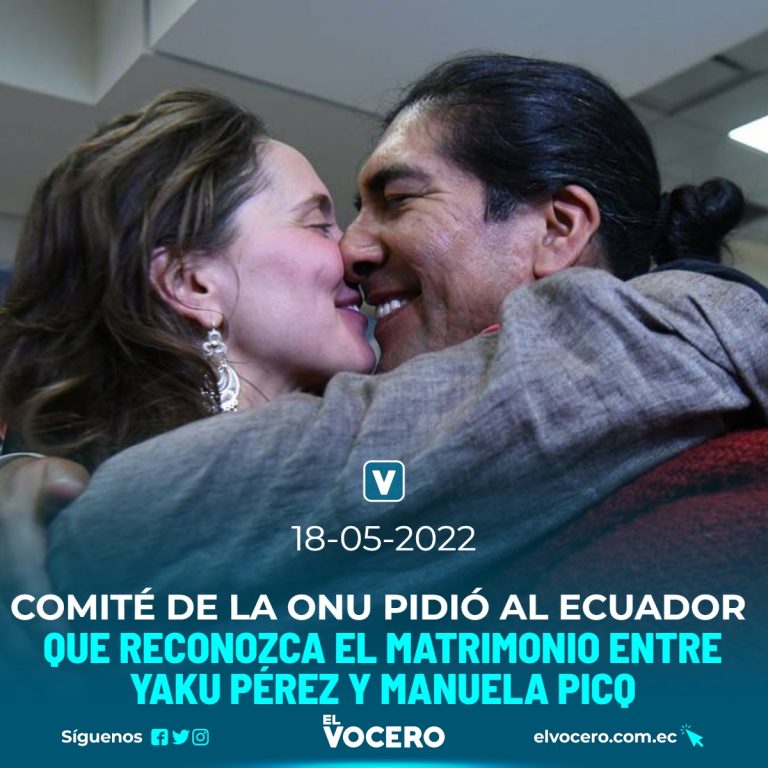 El Comité para la Eliminación de la Discriminación Racial de la Organización de las Naciones Unidas (ONU) solicitó al Estado ecuatoriano que inscriba el matrimonio del activista político Yaku Pérez Guartambel con Manuela Picq ante el Registro Civil, al haberse determinado un acto de discriminación.
