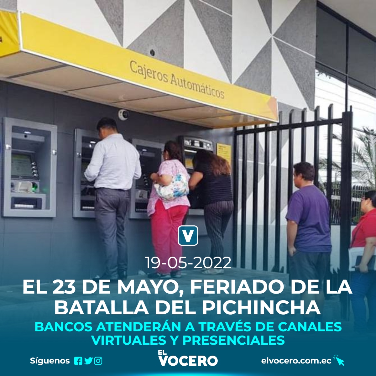 EL 23 DE MAYO, FERIADO DE LA BATALLA DEL PICHINCHA, BANCOS ATENDERÁN A TRAVÉS DE CANALES VIRTUALES Y PRESENCIALES