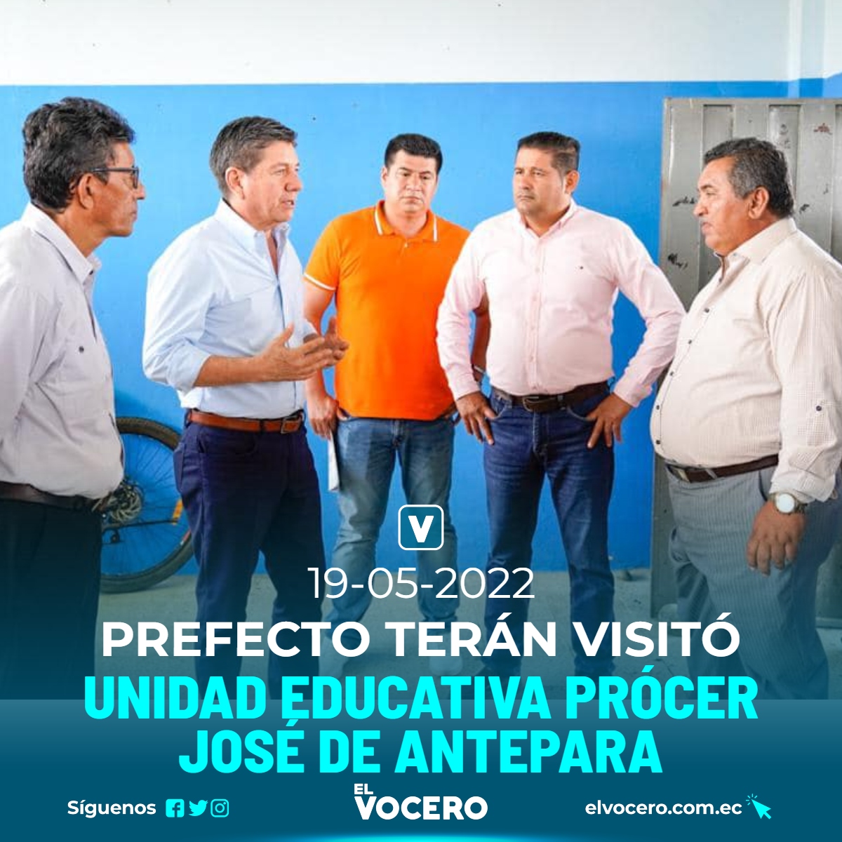 «Allí presentamos el proyecto del Complejo Deportivo que próximamente ejecutaremos en este importante cantón. Gracias al rector, Luis Jordan Yépez; al director distrital de educación Palenque-Vinces, Rogel Carriel; al Pdte. del Comité Central de Padres de Familia y a la Presidenta del Gobierno Estudiantil, por su cálido recibimiento», detalló Terán.
