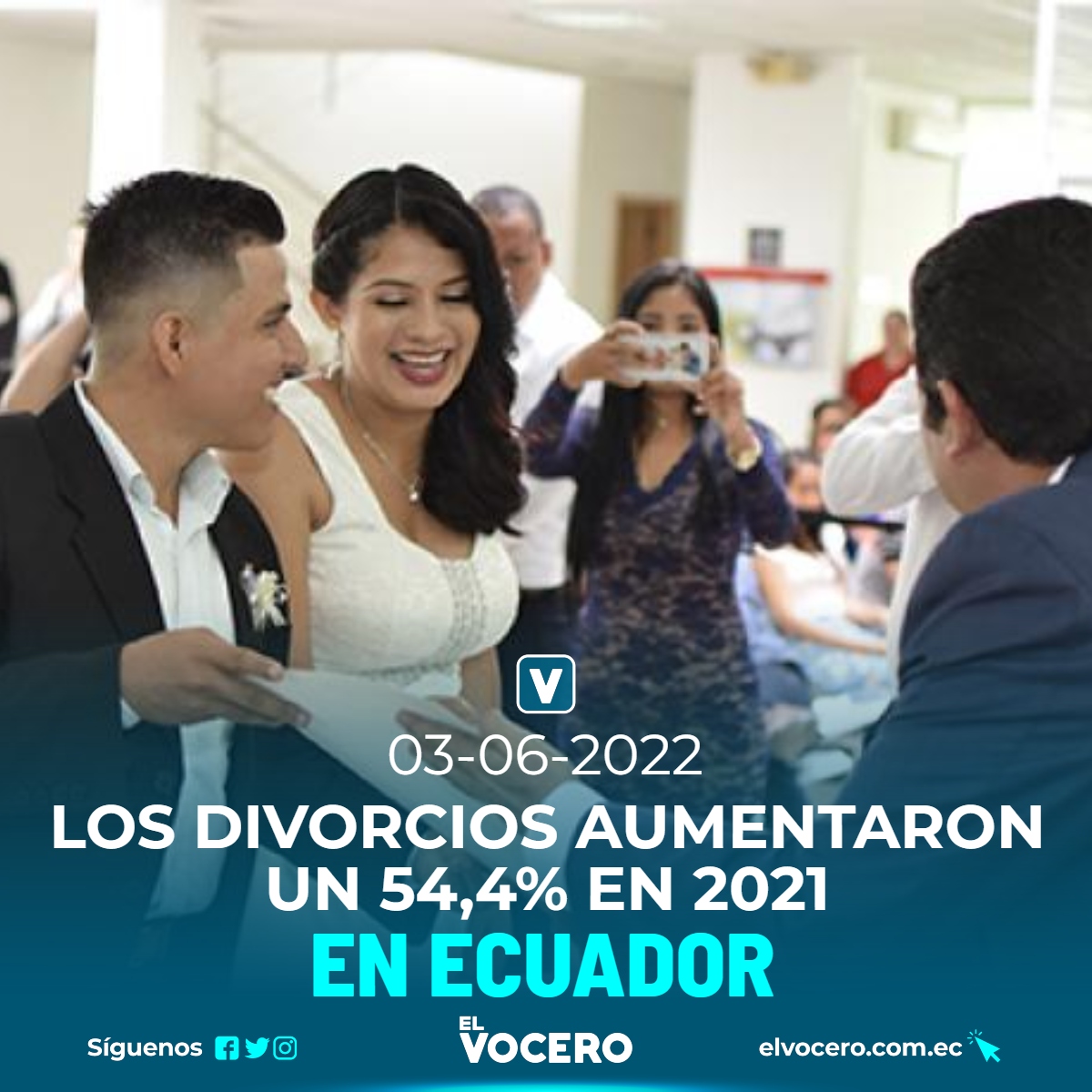 El INEC también informa que el promedio de duración de los matrimonios, en el 2021, es de 15,7 años. En 2020, en cambio duraron solo 15 años.